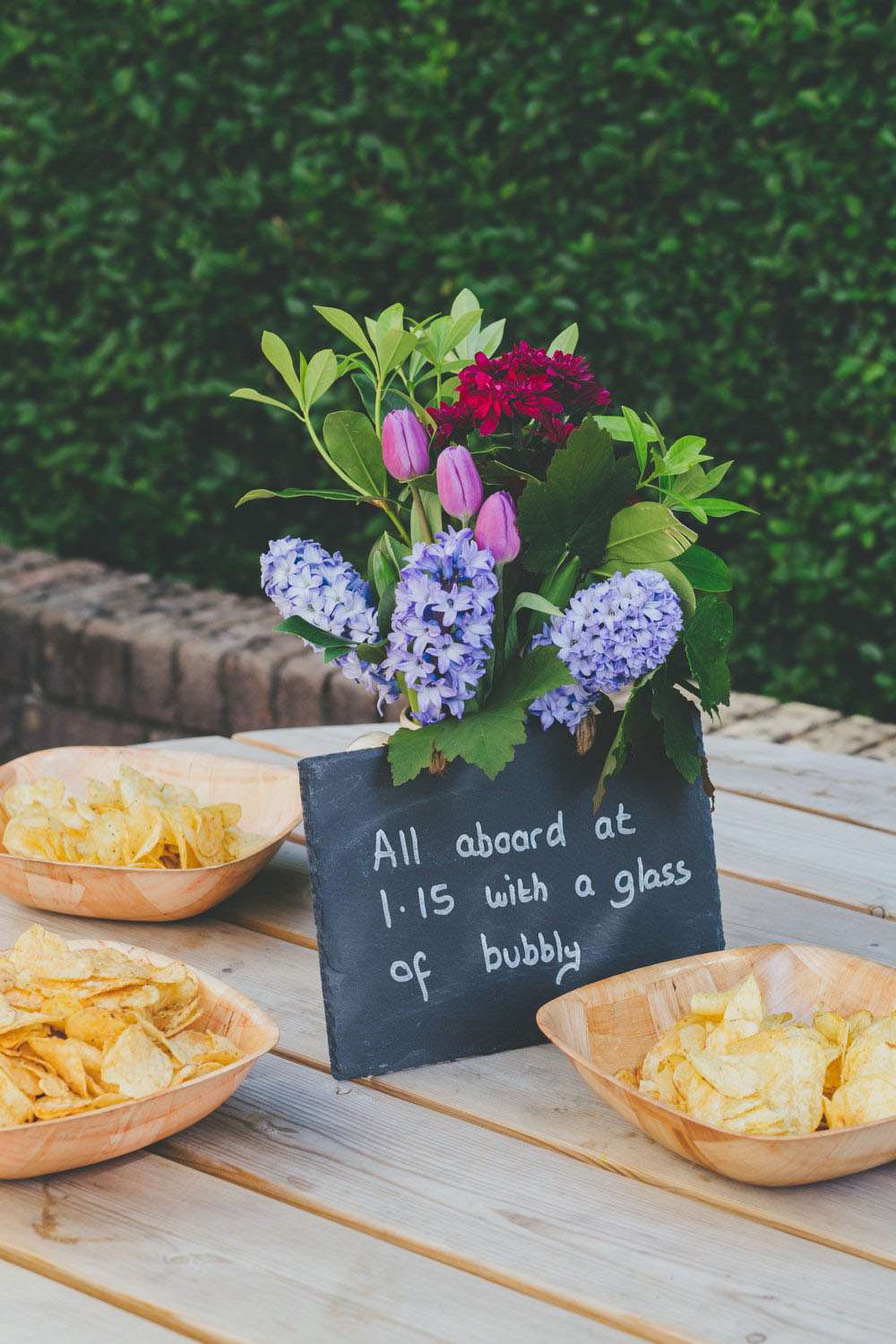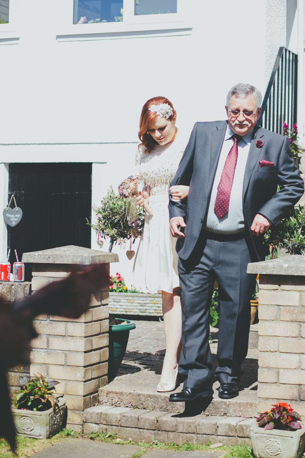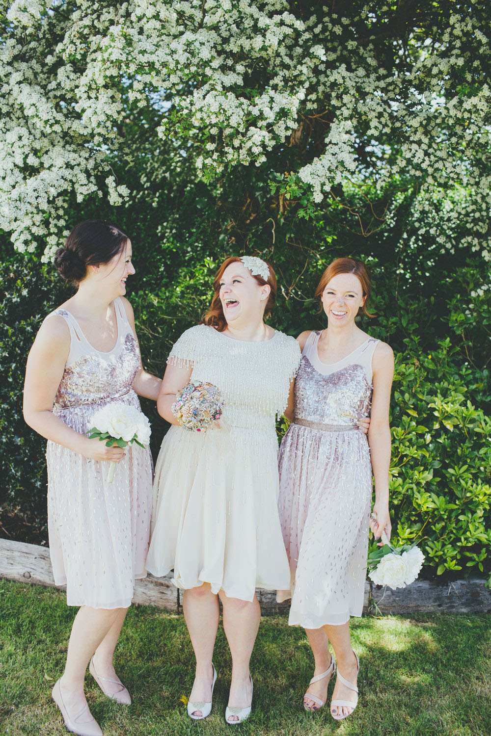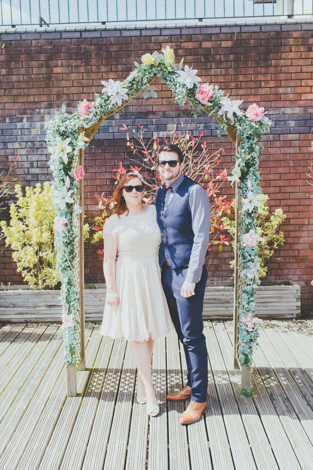 “We had a lot of trouble finding a ceremony venue we really loved and didn’t just want the standard registry office ceremony”, explained Amy. “Then we read the ‘How to plan a wedding‘ series on Rock n Roll Bride at the beginning of 2014 and it inspired the idea of having our ceremony in my parents’ back garden. It was by no means a foolproof plan, but once my parents were convinced (which didn’t actually take much doing) the ball was rolling. Since we’re both not religious a Humanist ceremony seemed like a perfect fit, and once we met Lisbeth, our celebrant, we knew we’d made the right decision. The ceremony she delivered was tailored to us, and our friends and family really enjoyed how personal it felt.”