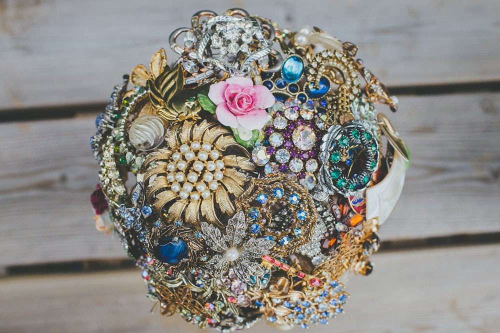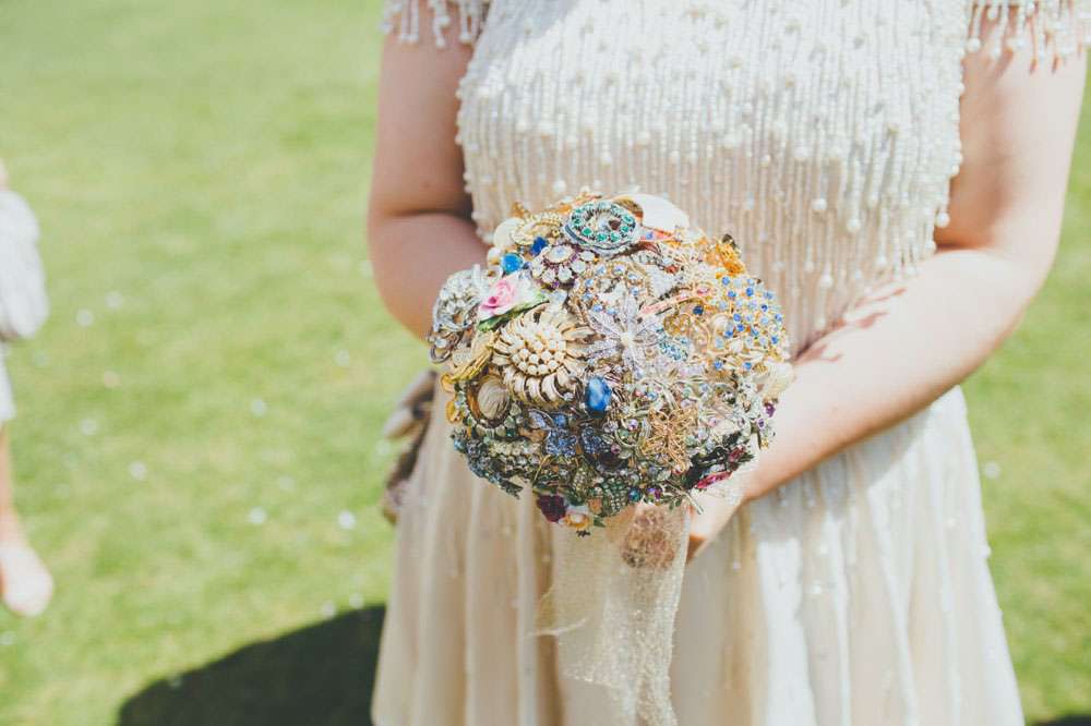All the flowers were put together by the bride from blooms bought from supermarkets and Amy’s brooch bouquet was homemade. “My bouquet was a labour of love which took over a year of collecting brooches and twisting lots of wire! My Nan passed away just two months before the wedding but she had donated a few brooches to me whilst she was still alive and carrying them in my brooch bouquet on the day definitely made me feel like she was there with me in spirit.”