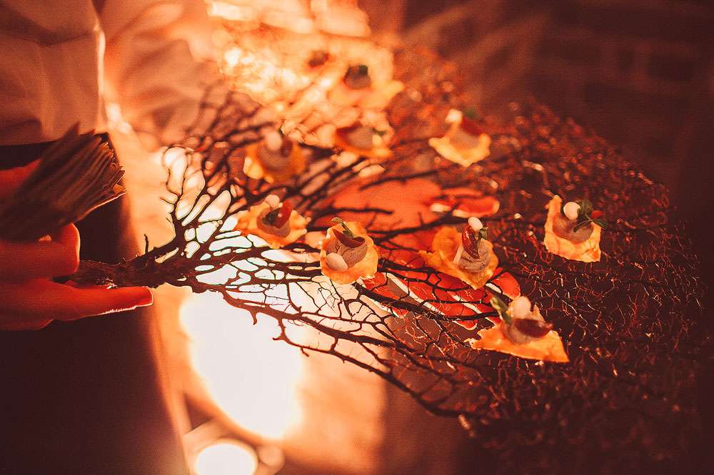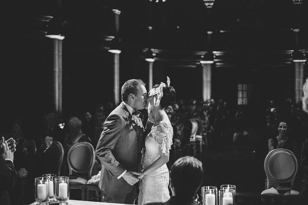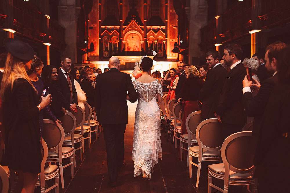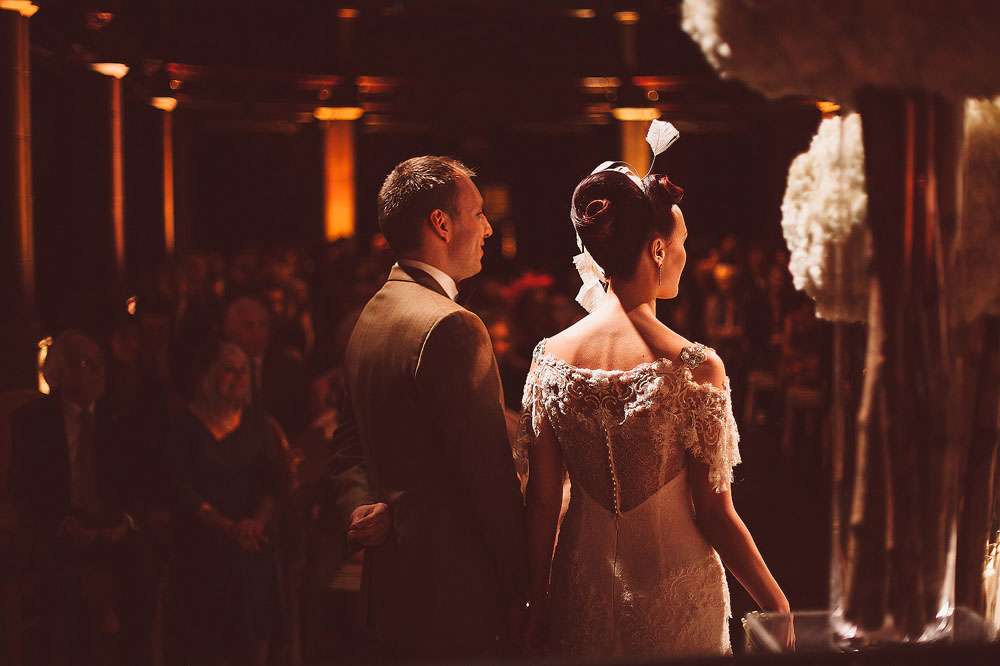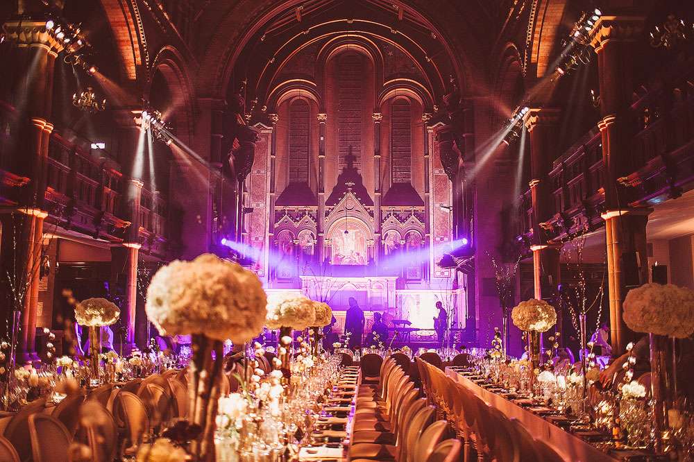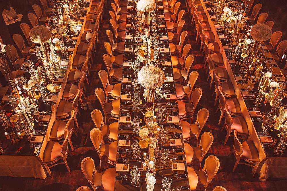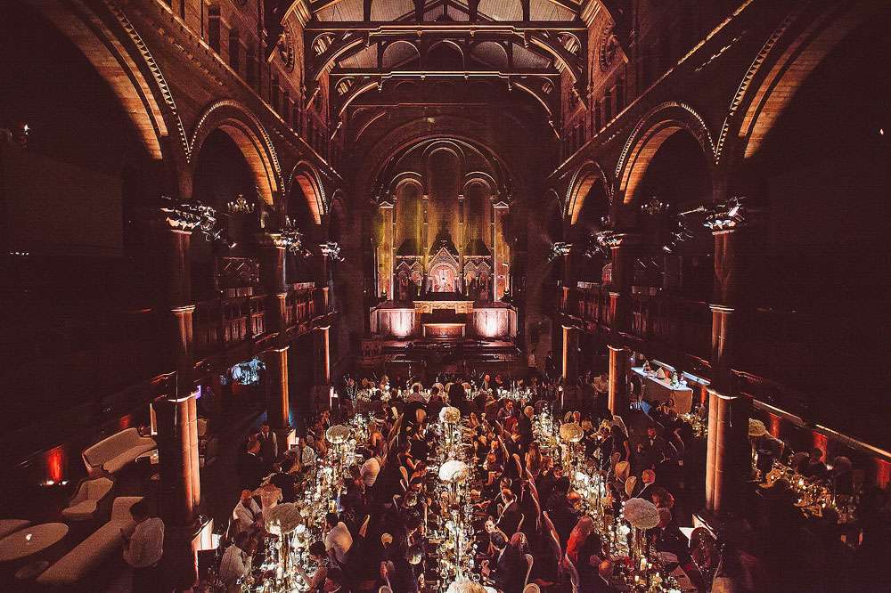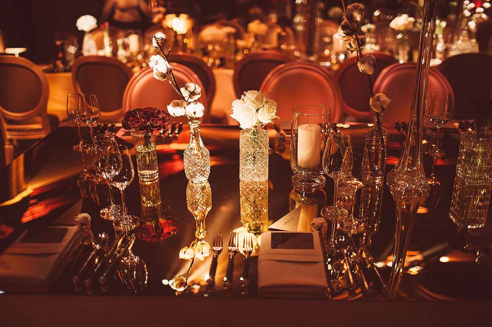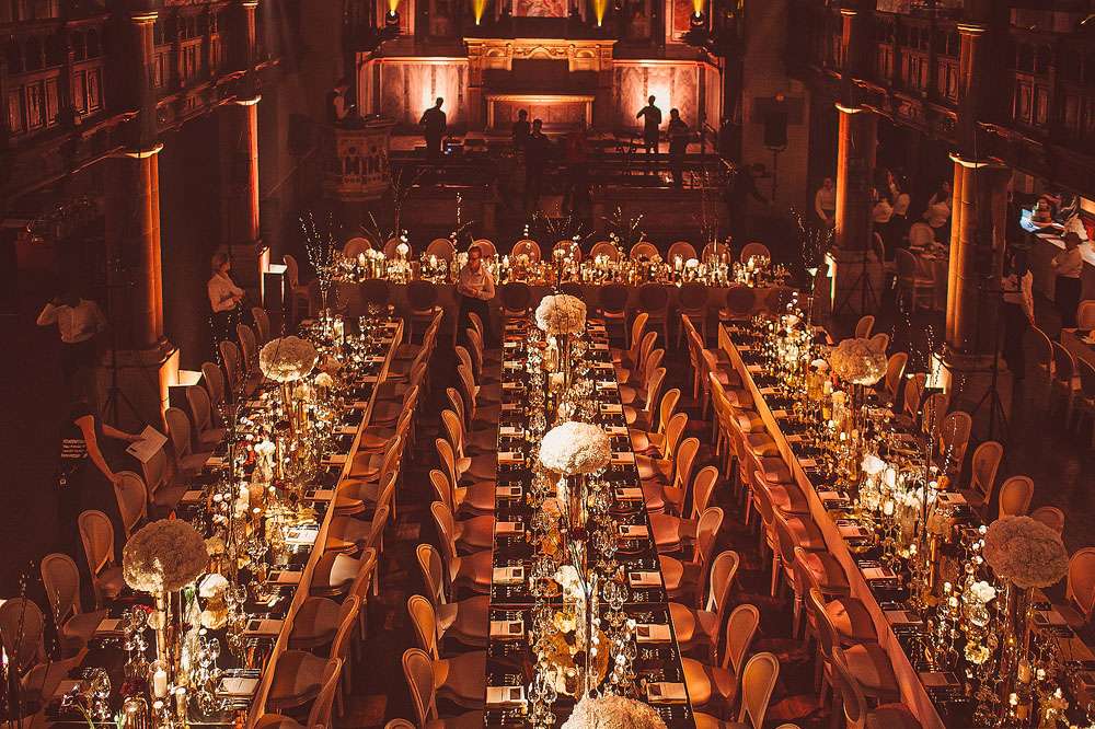 “We started by viewing my favourite venue in London, One Mayfair, and luckily Crispin loved it too. As the venue is an old church we took a little gothic inspiration from there and ended up with a gold, black and ivory theme. As it’s a dry hire space, we had to bring everything from all the lighting to all the furniture in so that ended up being the biggest expense. It was totally worth it though.”