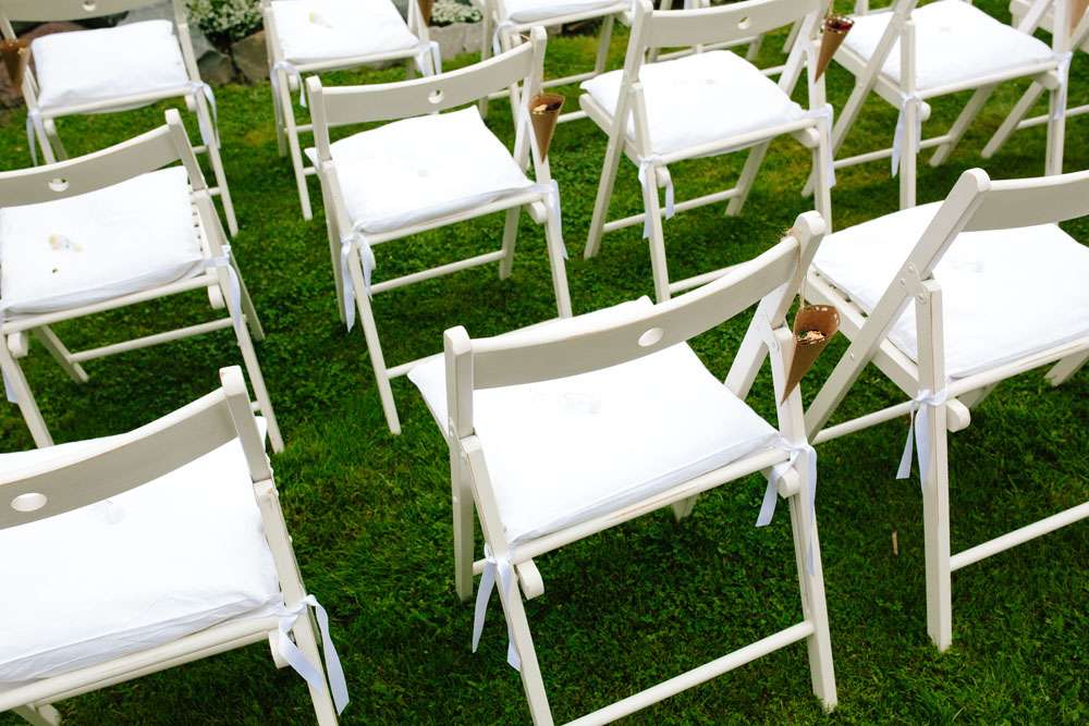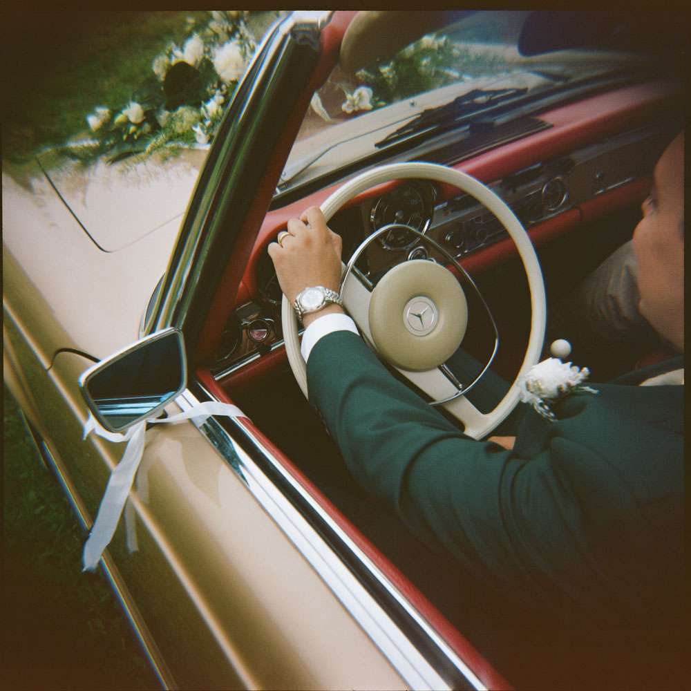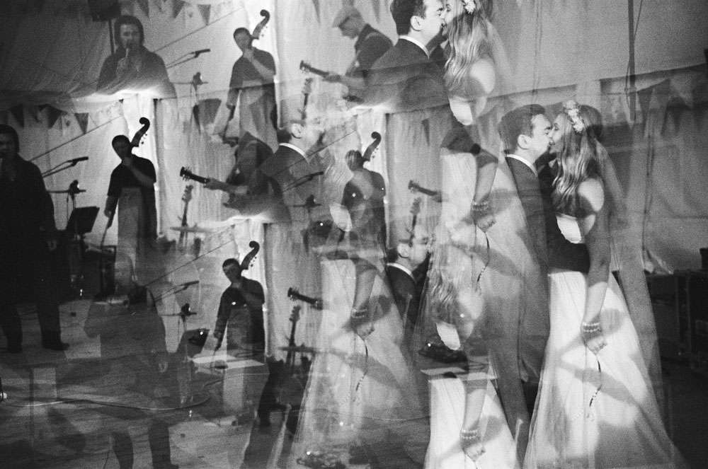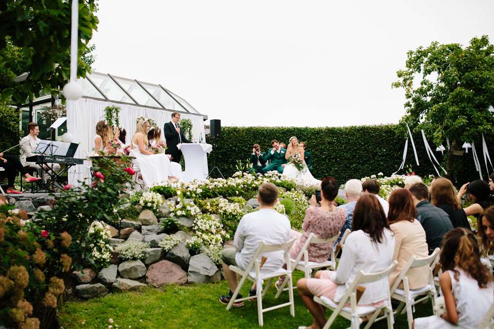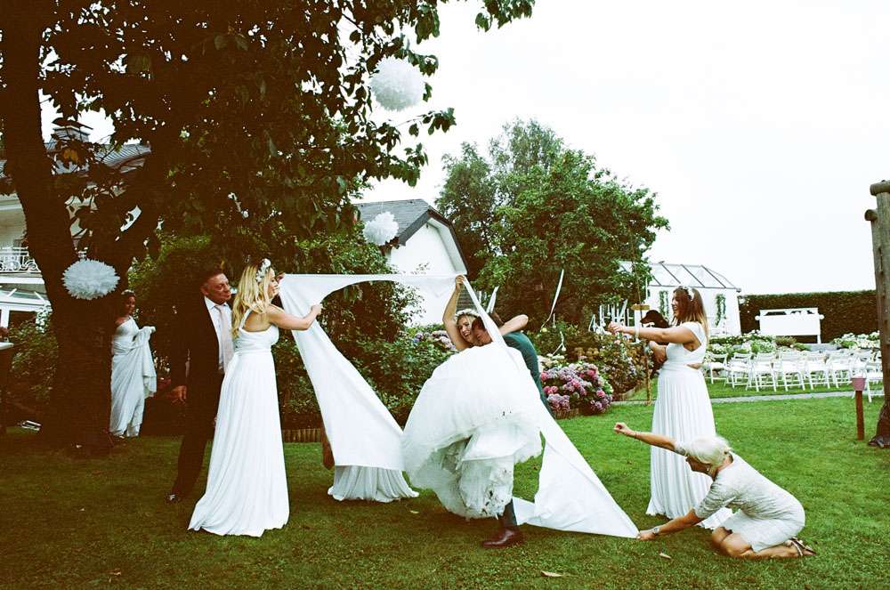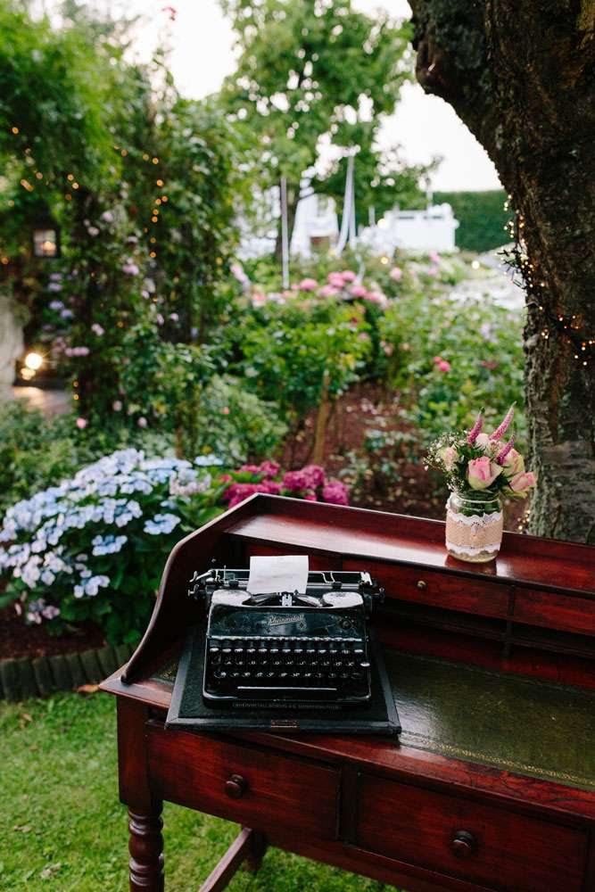 “My stepdad escorted me which meant a lot as my Dad was not there with us. Jordan took a picture of me on his old Leica M6 the moment he saw me. The whole bridal party sat on a slightly raised part of the garden facing the guest so everyone could see us and vice versa. Before the ceremony started we had our guests write a word that reminded them of us on a little wooden hearts that were collected by the bridesmaids collected during the ceremony.”