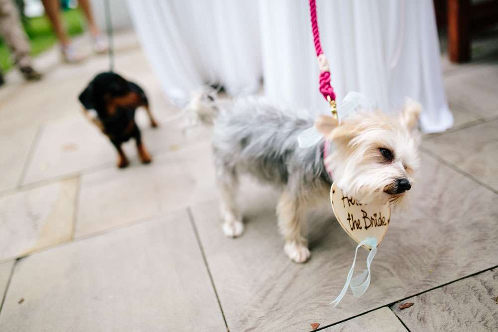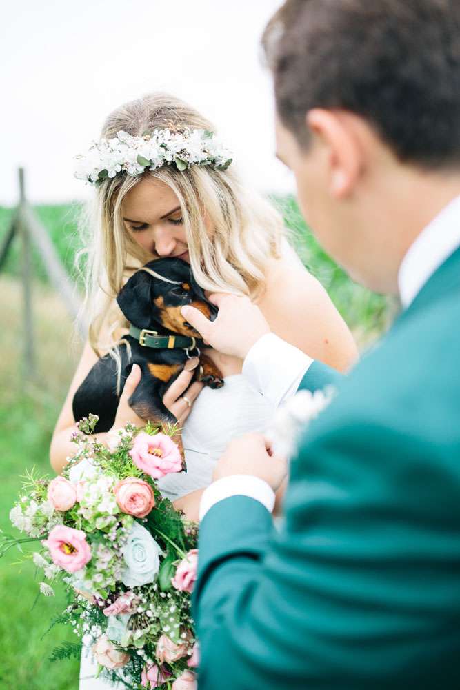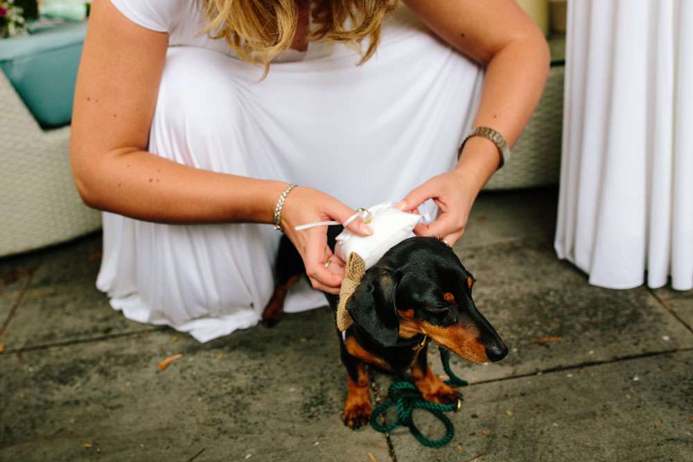 The ceremony was also held in the back garden of the house. “The ceremony was actually the most amazing part of the wedding”, she said. “The officiant did an amazing job with his speech that he wrote for us. I walked down the ‘aisle’ to an instrumental version of Elvis Presley Cant help falling in love with you played on the violin and piano. My bridesmaids walked down the aisle before me, one of them walked our miniature dachshund, Walter, who was our ring bearer.”
