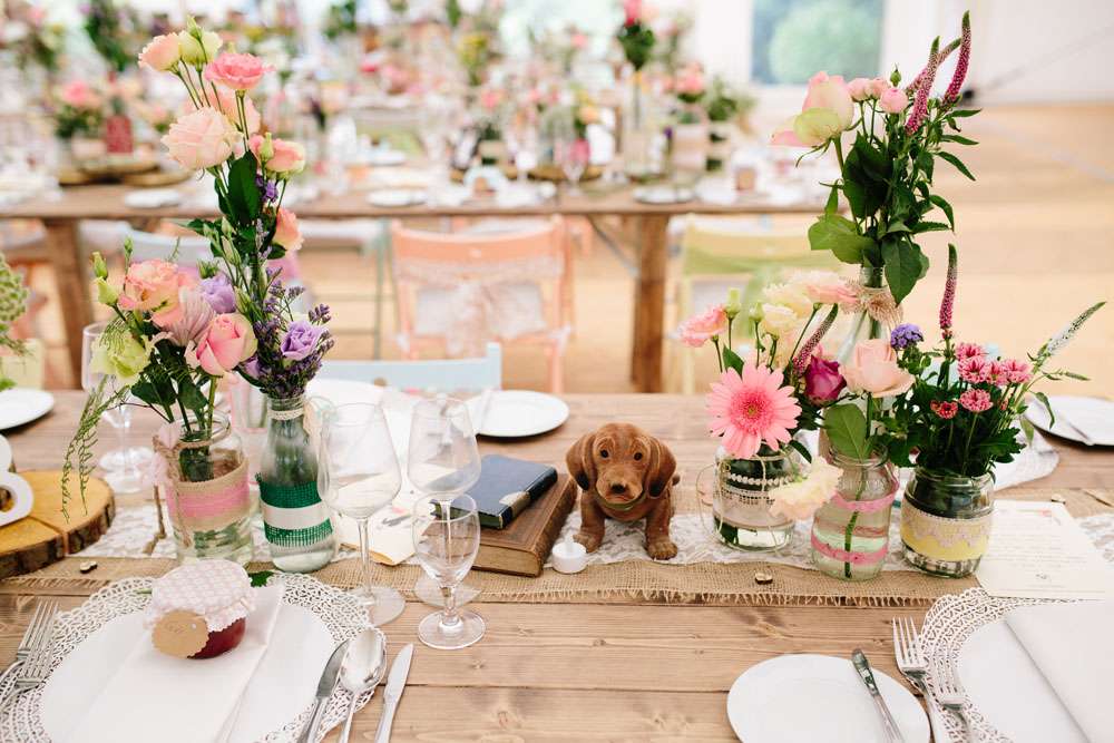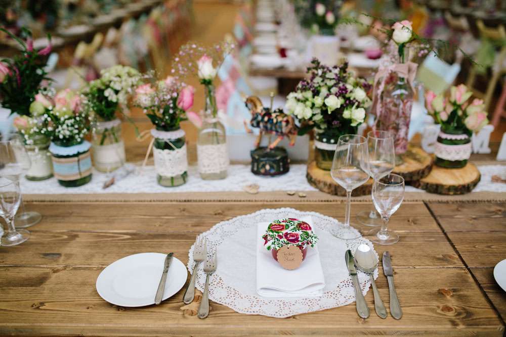 “We wanted everything to be unique and personal so we spent a lot of time hunting for decorations on eBay and flea markets and making SO MUCH stuff”, Jennifer said. “Like most brides today, Pinterest became my best friend was a huge help getting all our ideas together. I probably had about 10 different wedding boards by the end! We decided early on that we wanted to get married in my parents’ garden so we built the wedding around that. We went for a little Alice in Wonderland vibe mixed with a vintage funfair and lots of small details. I think the wedding represented us as a couple and all things we love. Jordan and I both work in the film industry in creative jobs so we were very particular on how we wanted every tiny detail to look, almost like building a film set.”