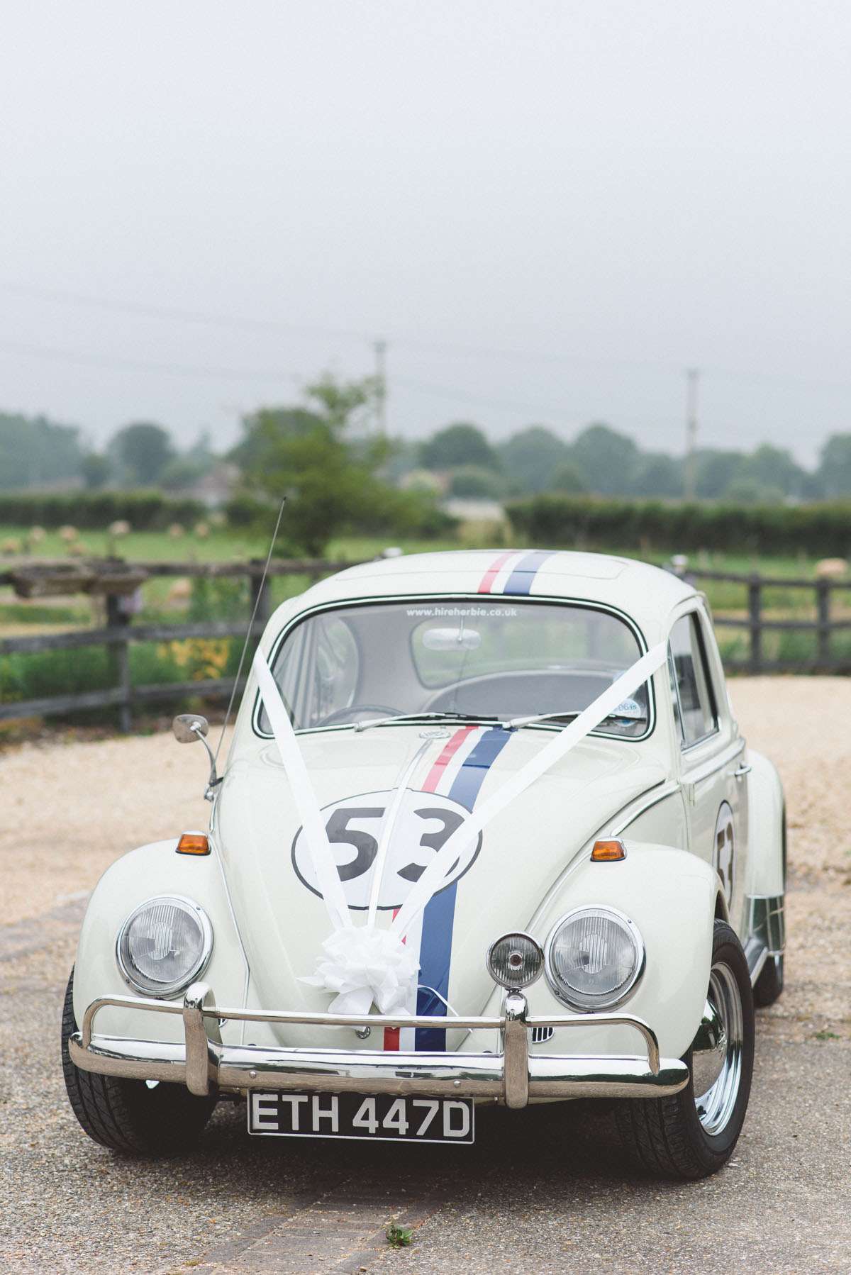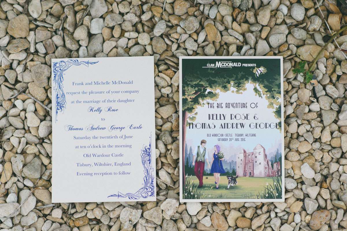 Kelly and Thom wanted their wedding to be inspired by their love of travel, but with fun little unexpected touches. They weren’t constrained by a particular theme, they just picked things they liked, such as having a ‘Herbie’ Beetle as their transport! The ceremony was held at Old Wardour Castle and the reception at Spitfire House Farm, private farming estate owned by family friends.