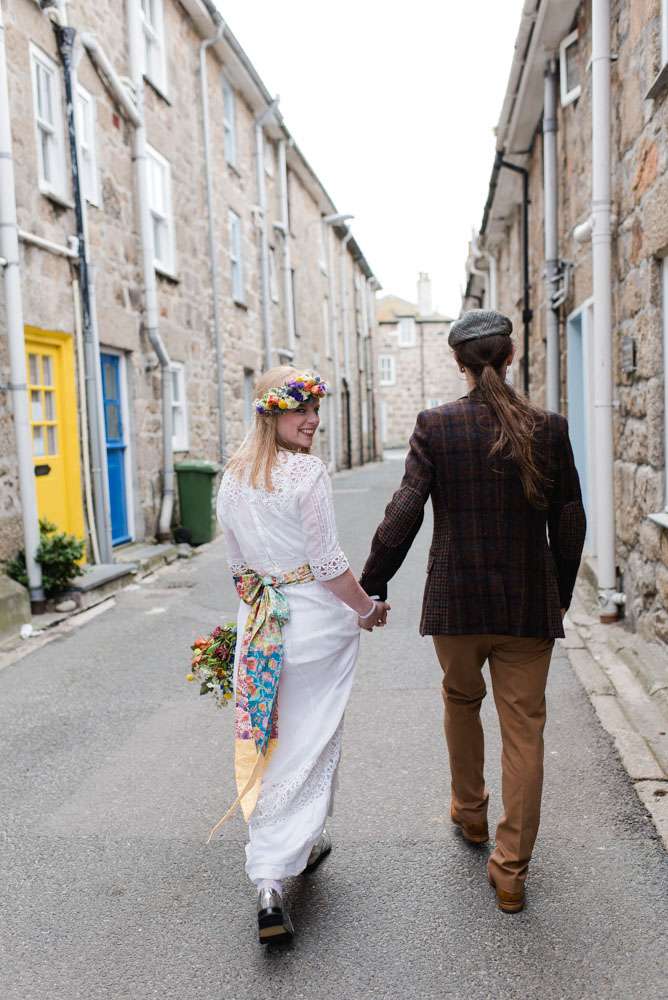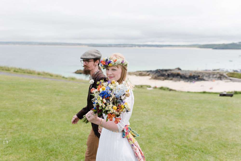 “There are too many amazing moments to mention”, the bride concluded, “but we are so grateful to everyone who travelled down to St Ives for our wedding. It was just so awesome sitting outside the Sloop (our favourite pub) on the harbour and seeing our friends rock up. Also seeing everyoneʼs reaction to our ceremony which we wrote together with our officiant was incredible.”
