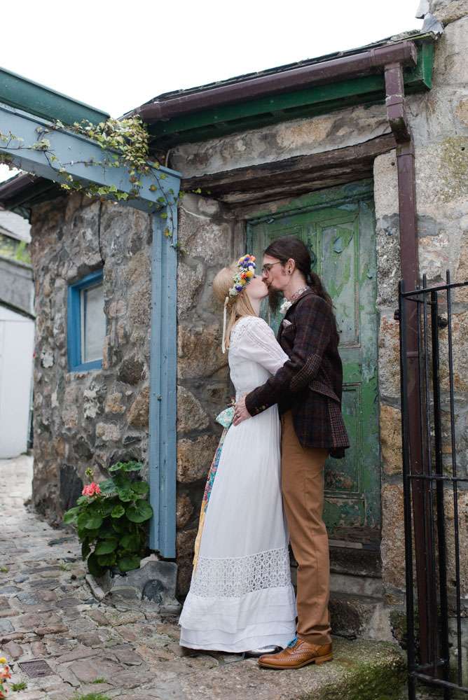 Lauralei and James, known to friends and family as Frog and Weasel, were hitched in St Ives in June. They rented a gorgeous cottage for the week and were married on a Wednesday. Their ceremony was held at St Nicholas Chapel and they had lunch at The Rum and Crab Shack where they had a huge crayfish buffet for everyone to dig into. Finally, the evening reception was at Porthmeor Studios, a mid-century built artist studios.