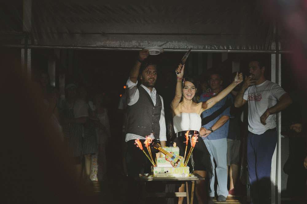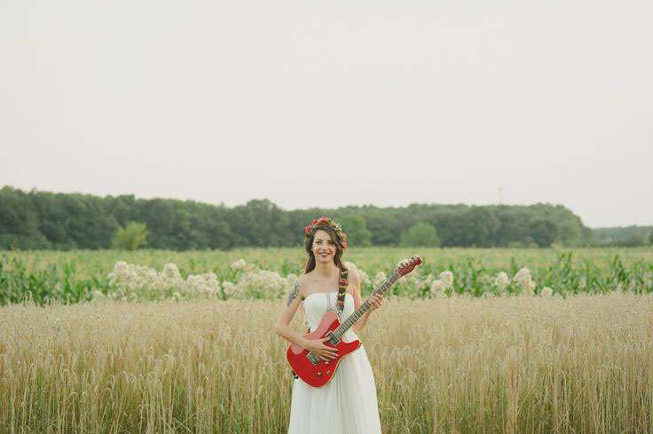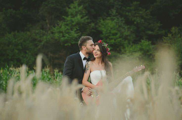 Music festival lovers Cris and Vlad wanted their Romanian wedding to reflect their love of going to, and playing at them. “The inspiration for our wedding was music festivals, Woodstock in particular”, said the bride. “My husband proposed at Sziget Festival, in a tent, at 3 am and I am in a band so it made perfect sense.”