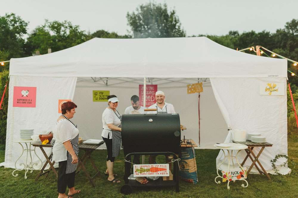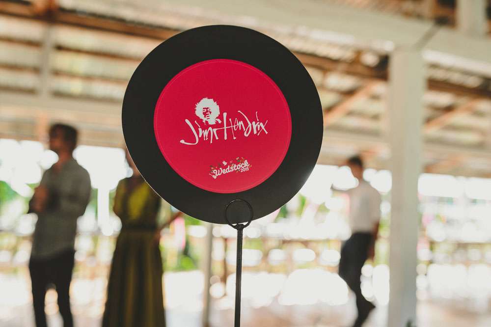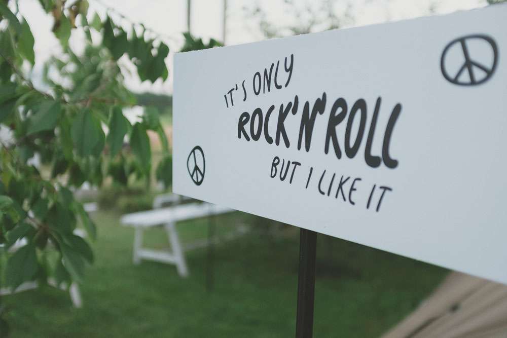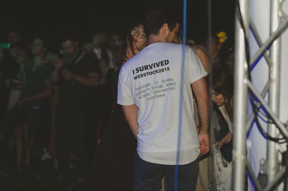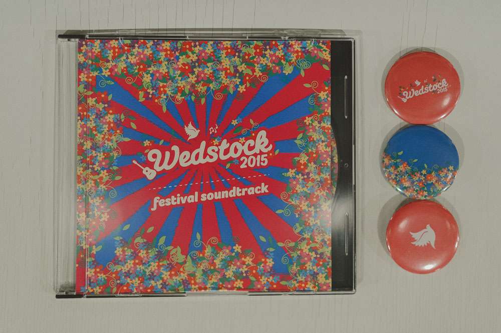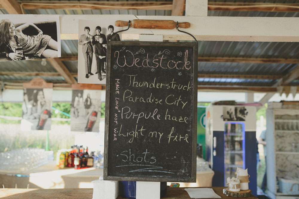 “We had LOTS of little details at the wedding, all of which were inspired by music festivals and bands we love. Each guest received a wristband and we even had an ‘Official Merchandise’ stand where were had CDs, badges, cups and t-shirts for our guests to take away. We arrived in a VW van and most of our guests camped over.”
