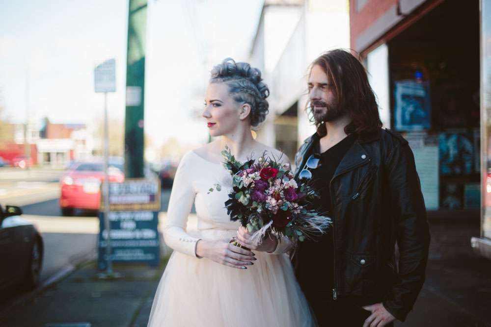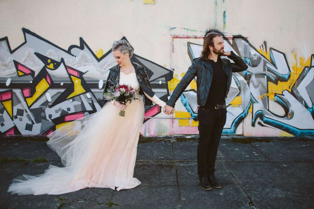 Stylist Karrie Anne Holland had the idea for this glamorous Rock n Roll wedding shoot when she moved to Seattle. Inspired by the vibrant artist scene, and the grunge influence of the 90s (particularly Nirvana of course) she set about pulling together this shoot inspired by them both.