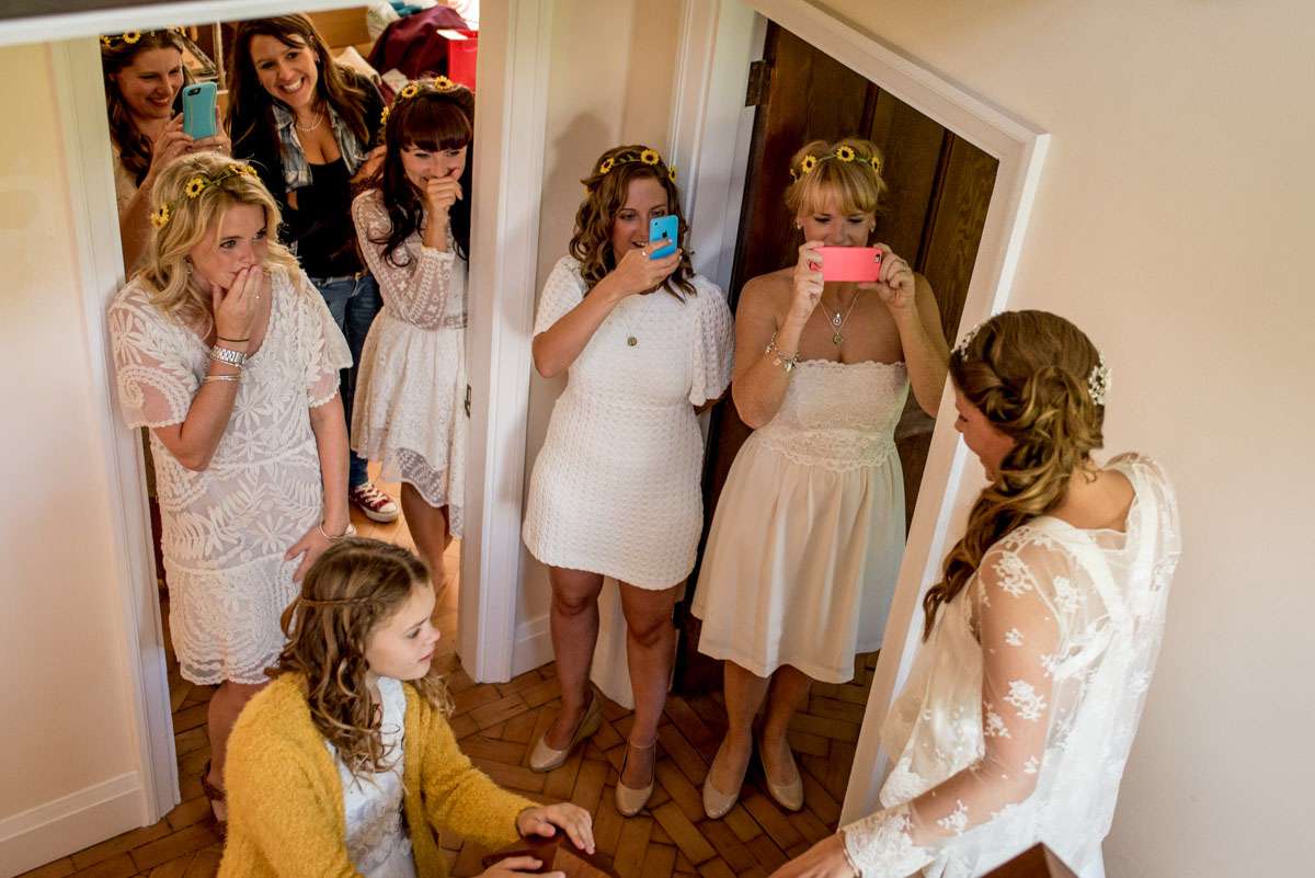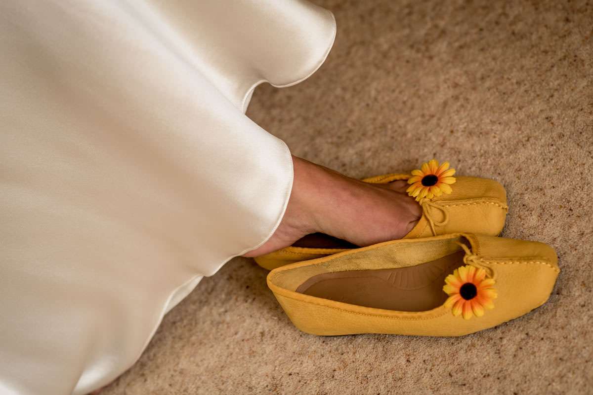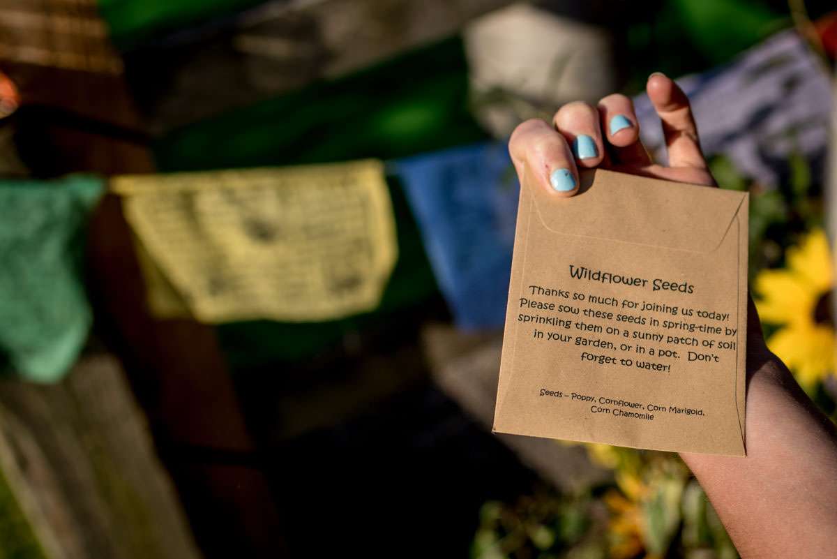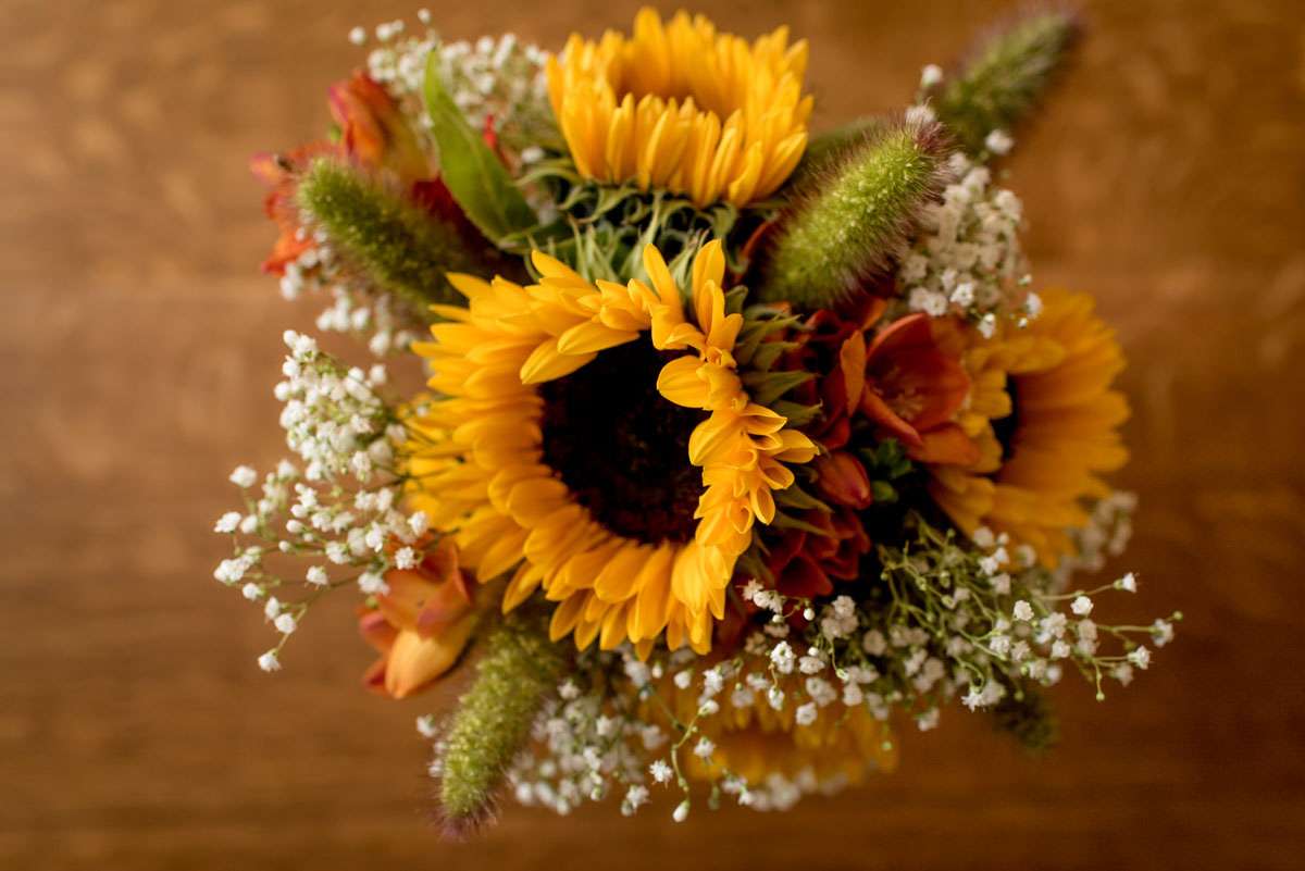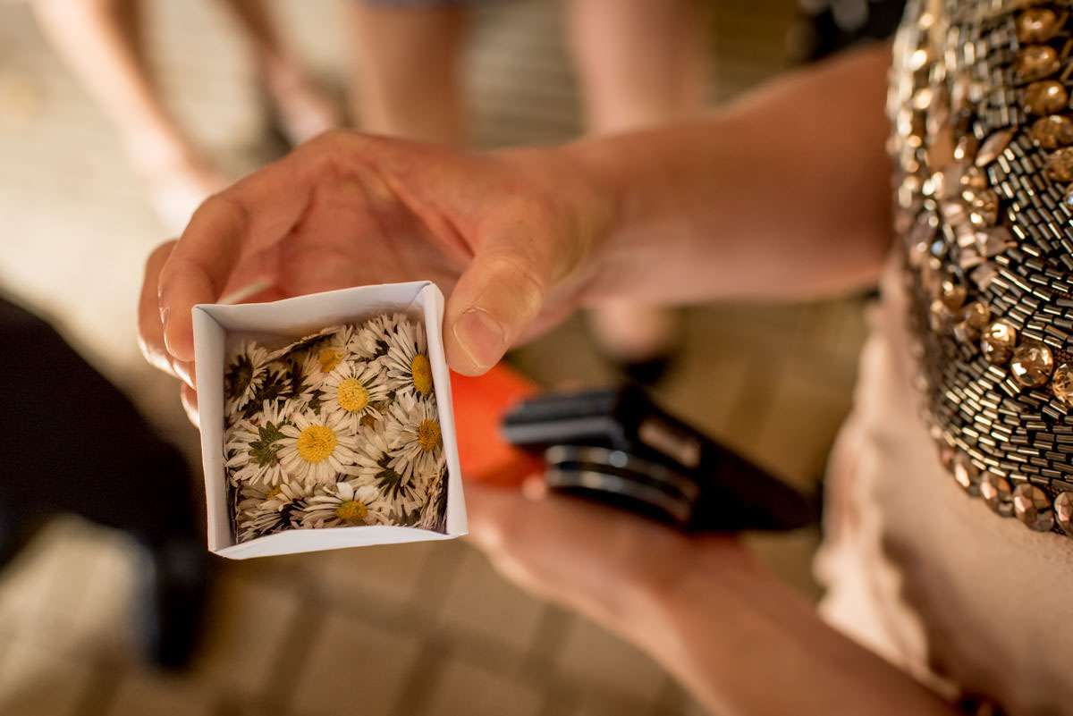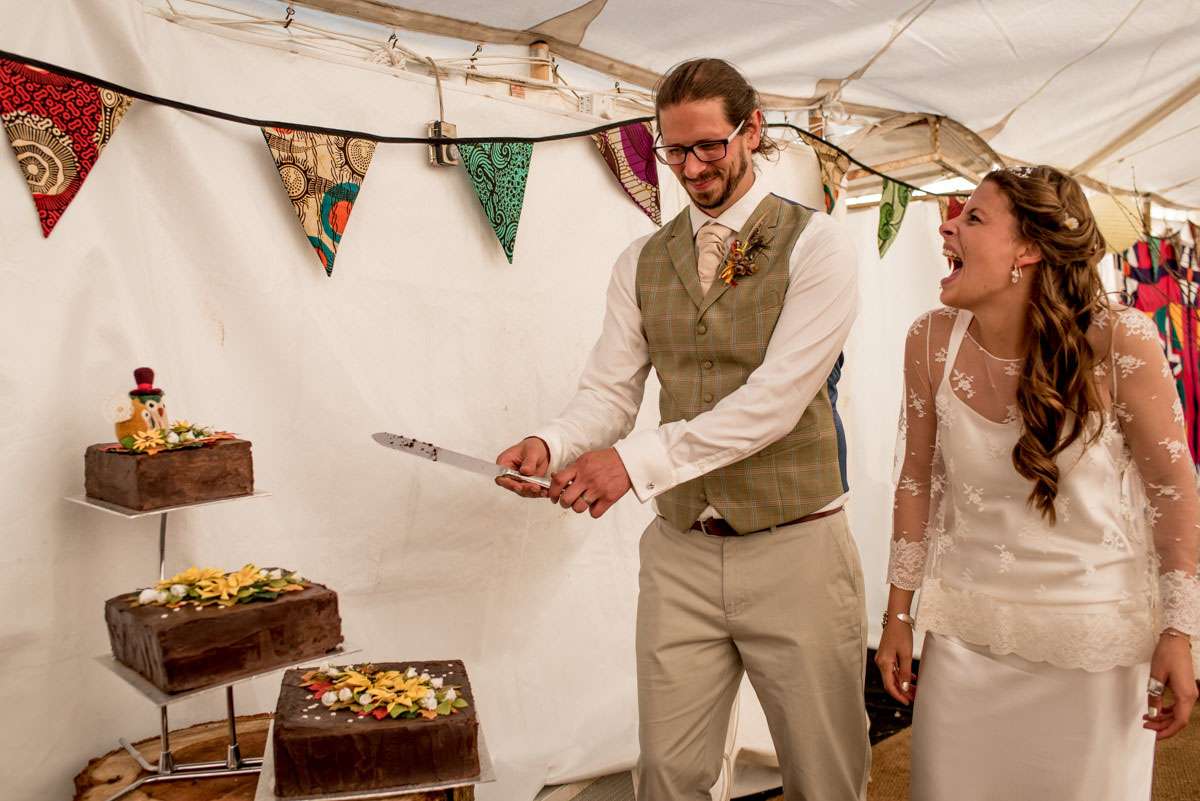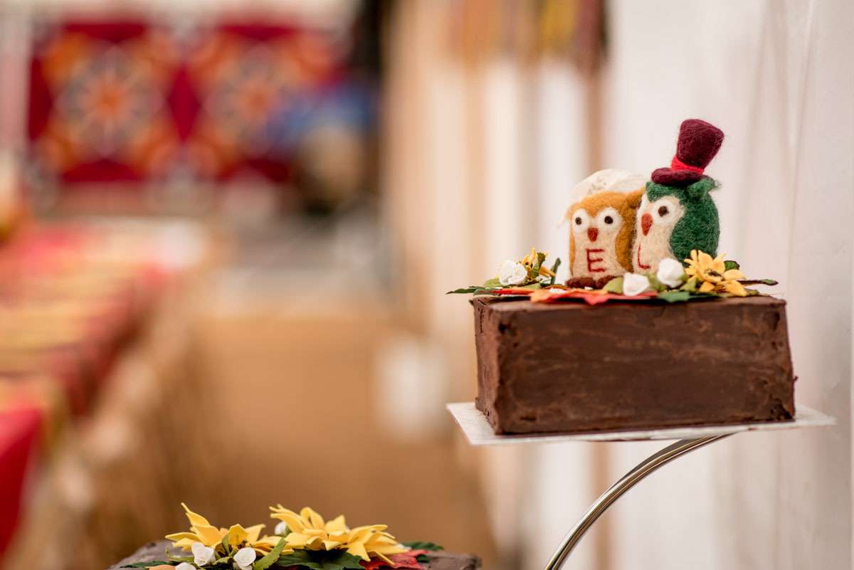 “The inspiration for our wedding grew over the few months we were engaged, we didn’t set out with an initial plan but knew we wanted it to feel relaxed, colourful and have a country element”, said Emma. “I lived in Kenya for a while and love the bright colours of African material. I bought some when I went to Uganda last year and began making bunting. A shop in Tetbury called Artique is an Aladdin cave of Indian artefacts. The owner showed us bright wall hangings and large umbrellas which they have used at Womad festival. We also wanted to bring in a country feel. I love sunflowers, so this also added to the expanding bright colour theme.”