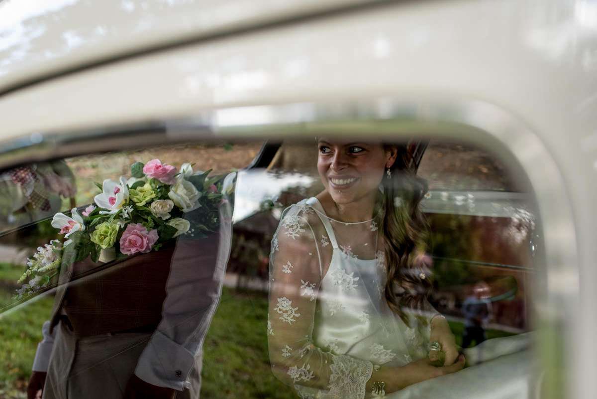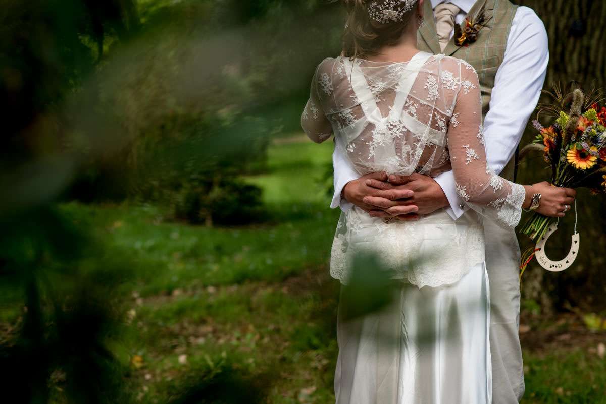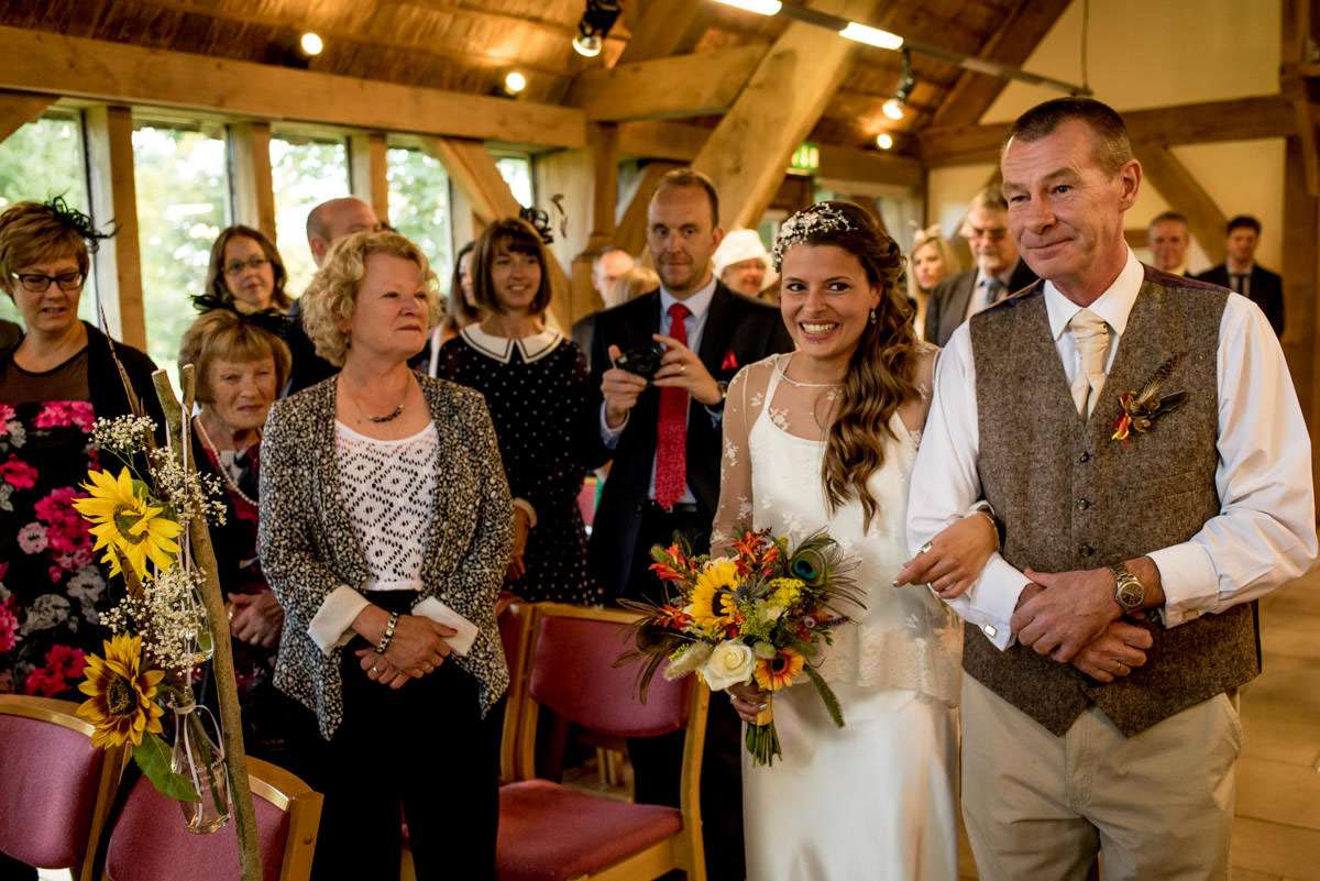 The ceremony was held at Westonbirt Arboretum and the bride arrived in her Grandpa’s consul. “It was much more relaxed and personalised than we could have ever imagined”, she explained. “There were spontaneous fist pumps between Leigh and bridesmaids as they came down the aisle. We had lovely readings that were chosen by our friends and two special songs sung by our talented friends.”