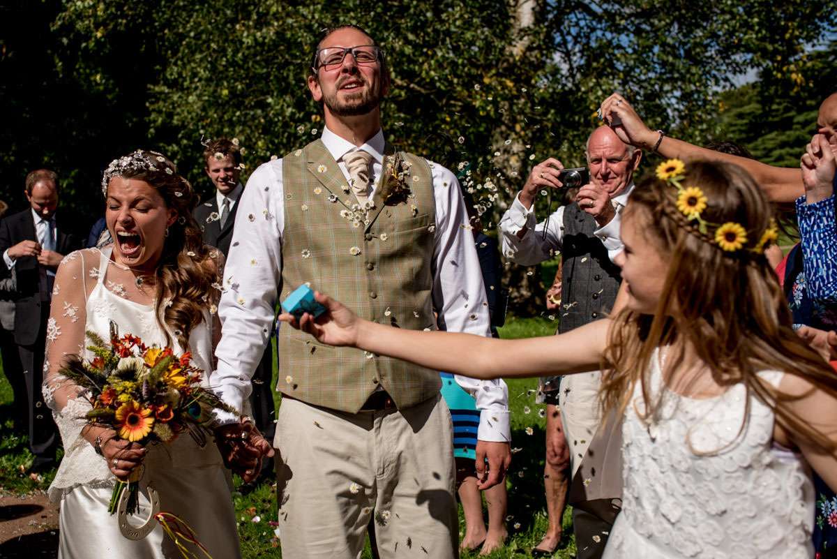 Emma and Leigh had their wedding in their own back garden. They wanted something relaxed and colourful, and inspired by some of their favourite places.
