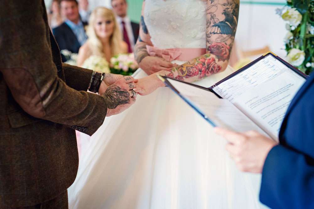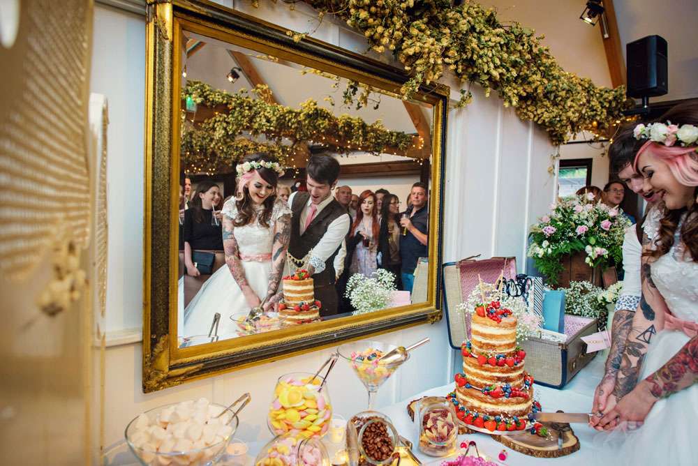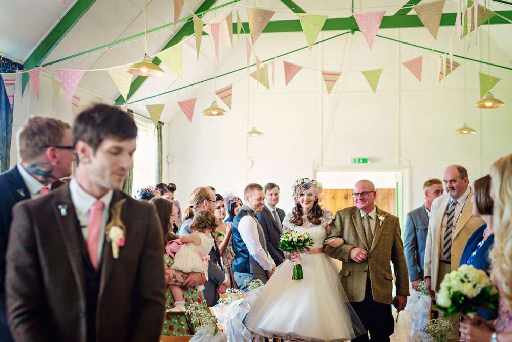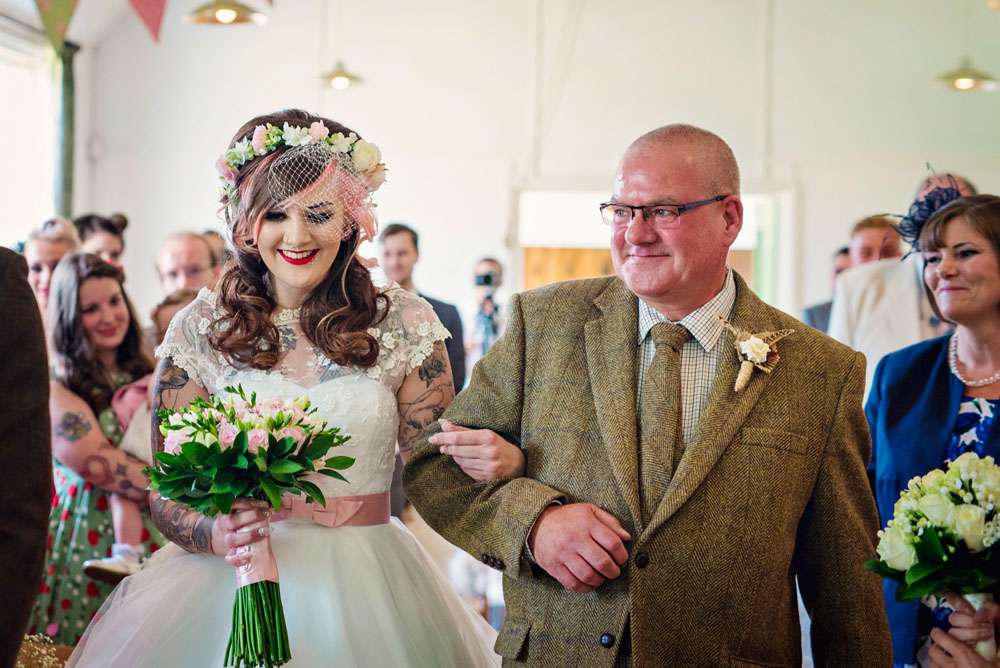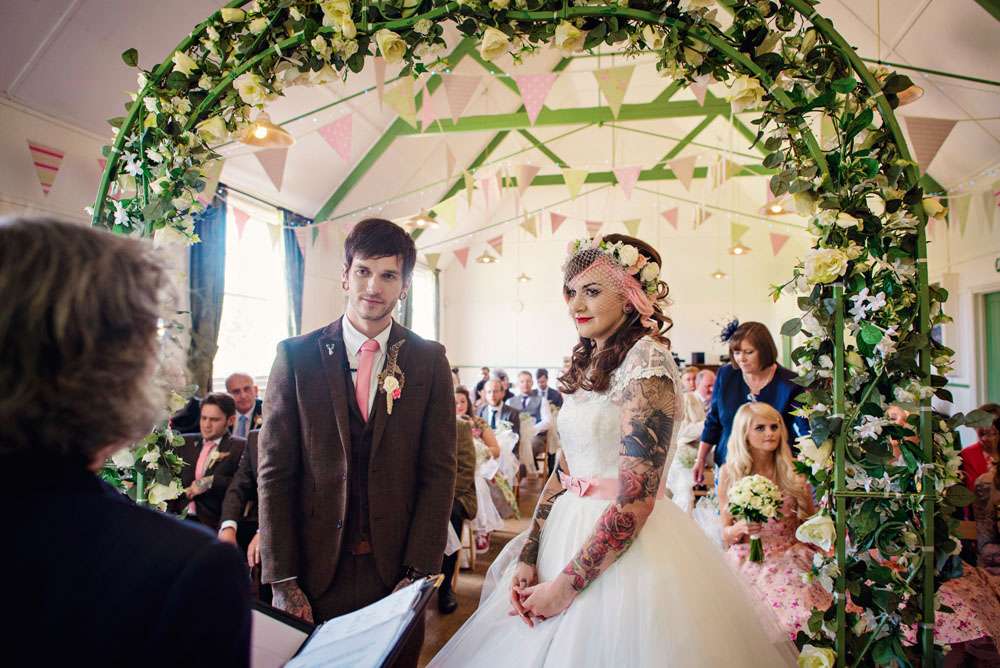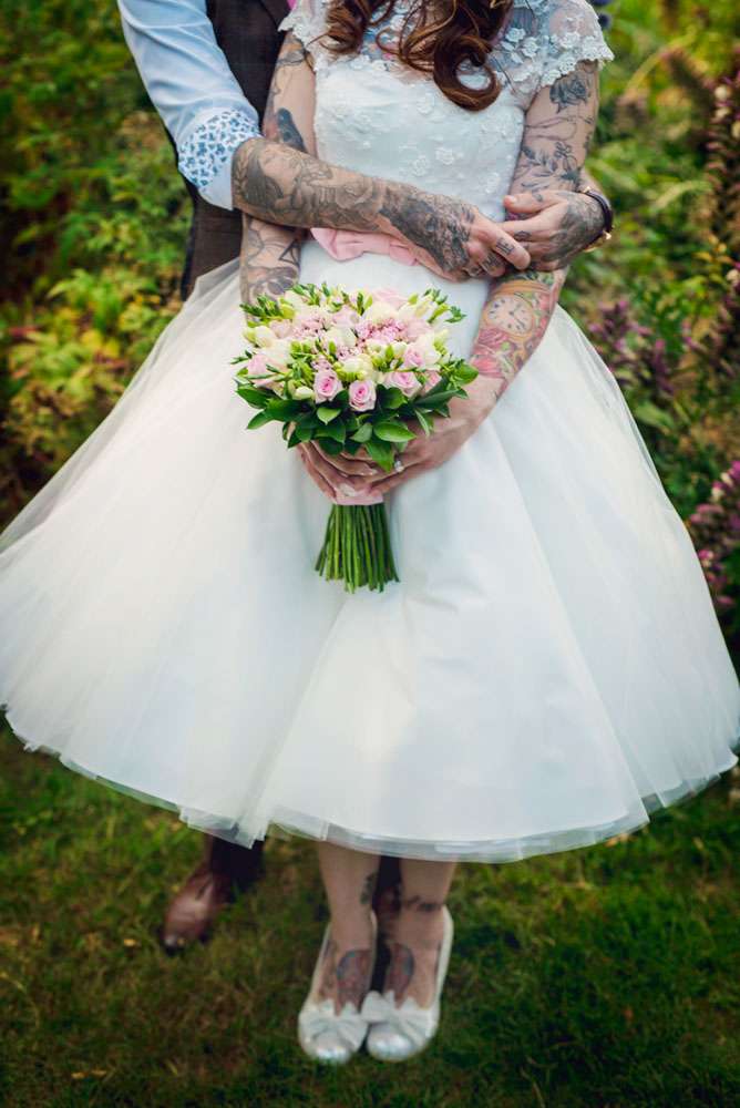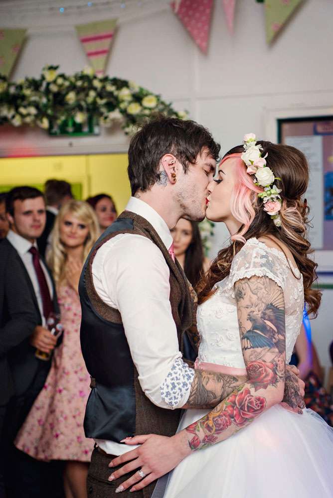 This gorgeous heavily-tattooed pair were hitched in Maidstone, at a venue called Kent Life. “Our wedding theme was a bit of a mixture of 1950s, rural farm life and a tea party!” said Danni. “We love the 1950s anyway, I have a huge collection of dresses already and we just love the music and the dancing. I really love that our wedding was personal to us and wasn’t generic.”