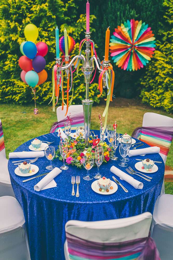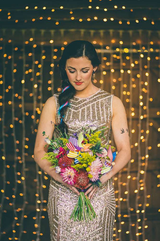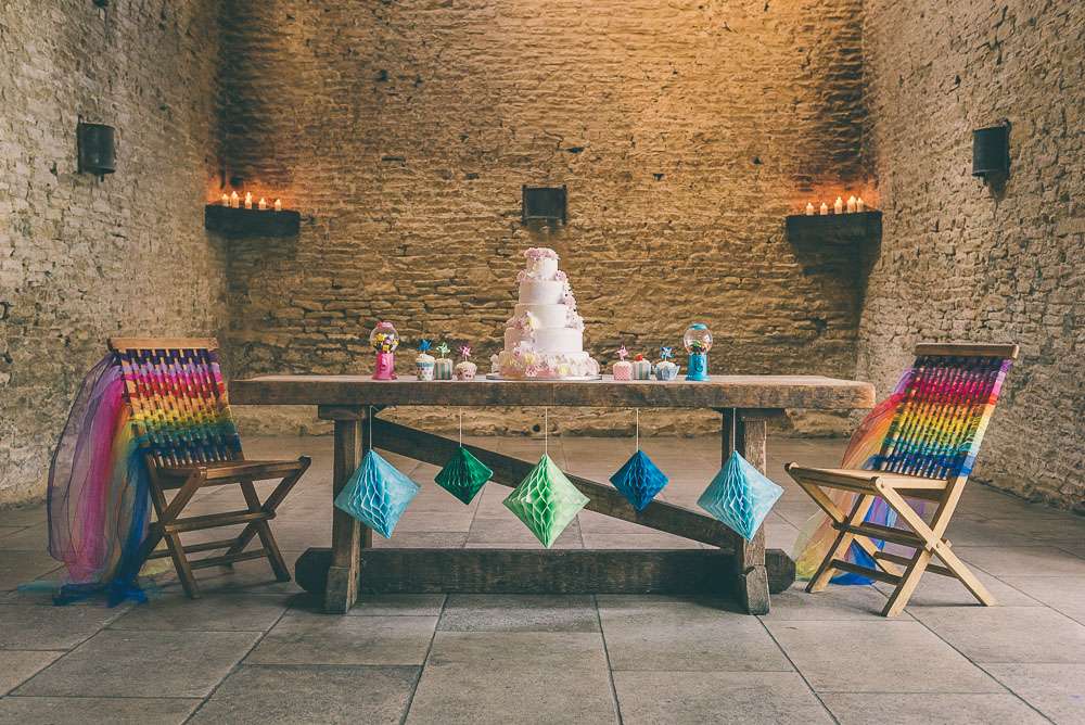 Put together by prop and wedding décor hire company Aisle Hire It!, they explained, “Our creative concept was designed around the idea of fairground frolics meet retro rainbows! We injected strong colour throughout the shoot, using fun, upbeat and quirky touches to ensure this was no ordinary bridal shoot.”