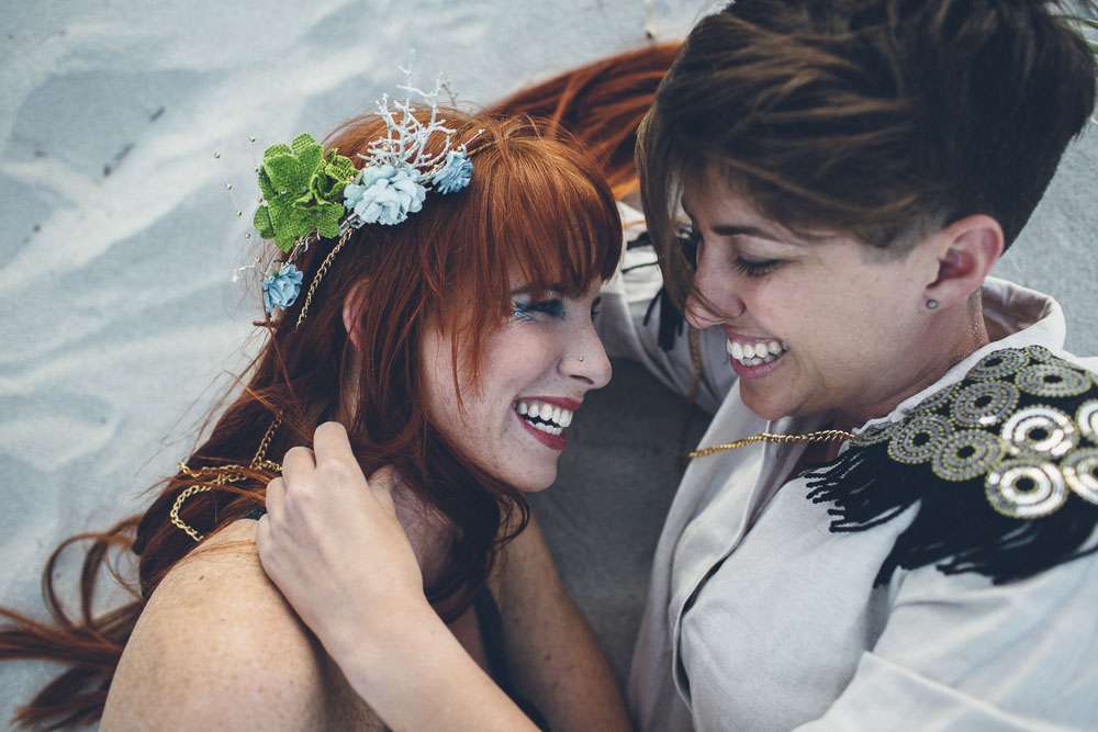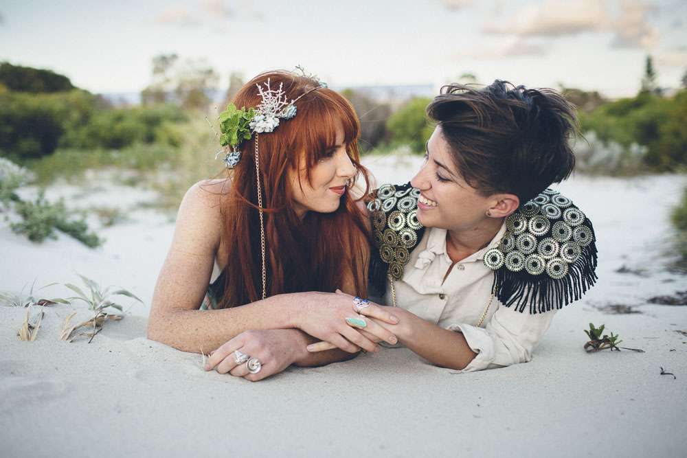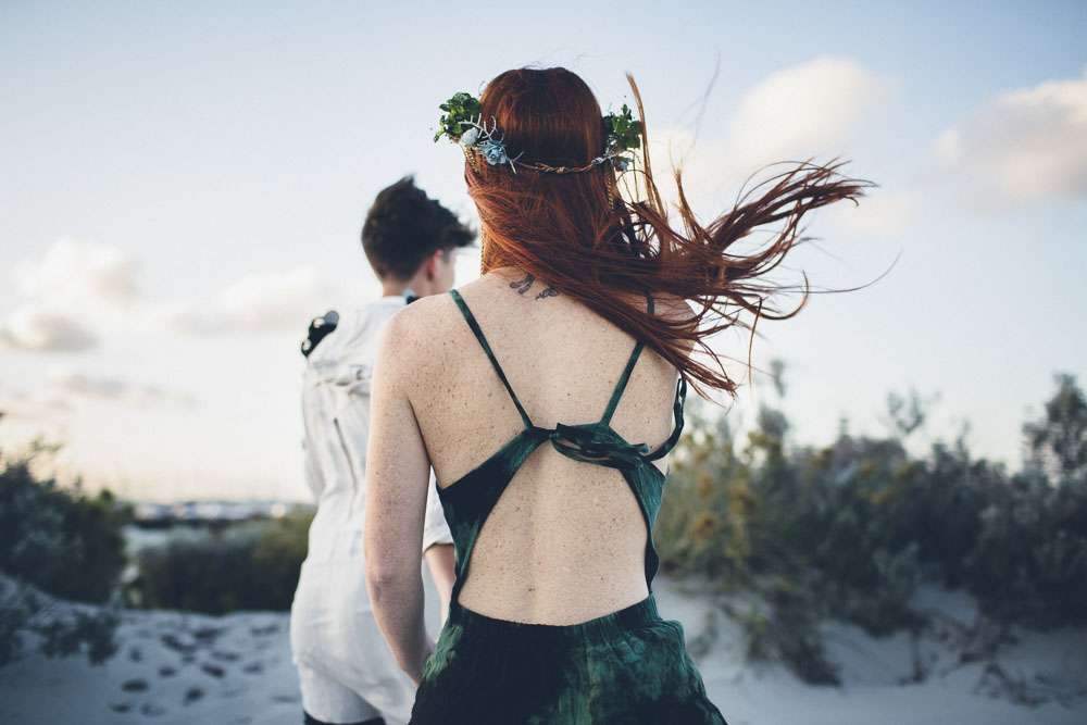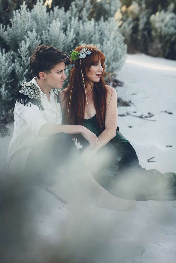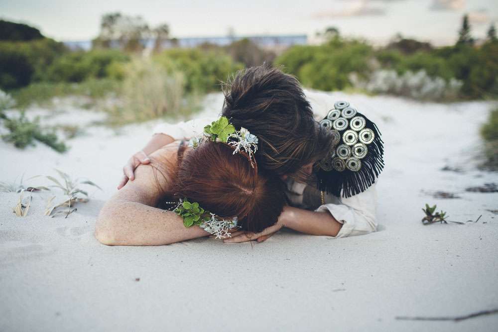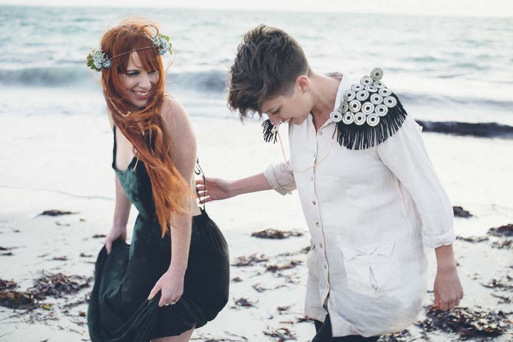 “Emma thinks Katie looks like the Little Mermaid with her stunning long red hair and Emma has always liked the idea of being a prince. We decided to play up the theme and dress up for a seaside adventure. As a photographer, I love the idea of adding more elements into a shoot to inspire my clients and have fun myself, so I handmade the sea crown and the epaulettes. They brought their own clothes and we ventured to Fremantle’s South Beach dunes.”