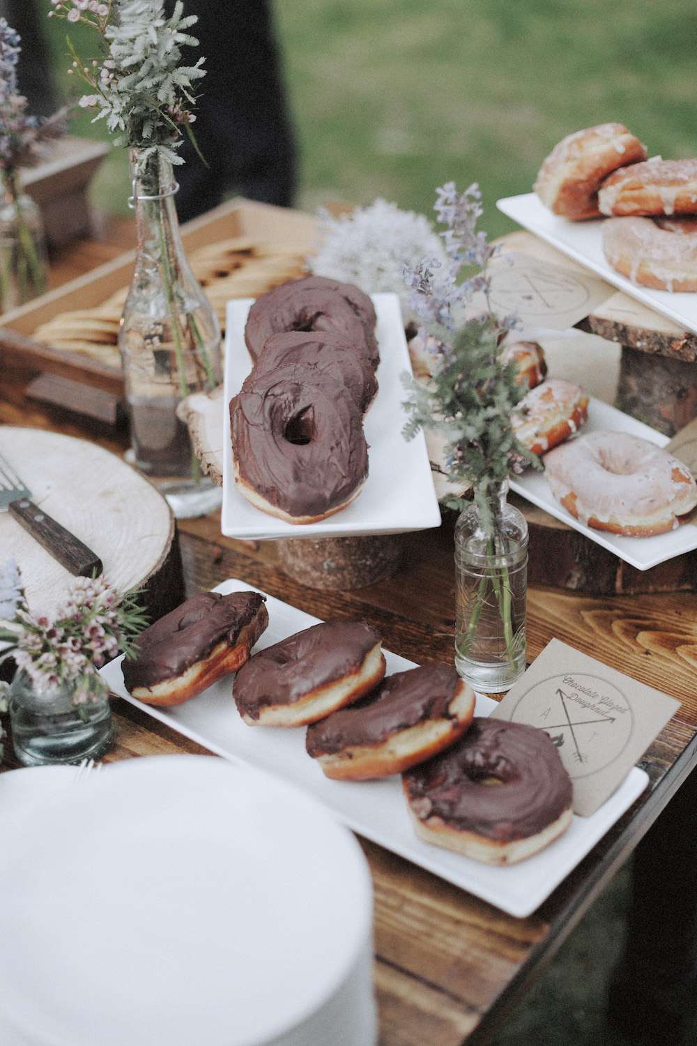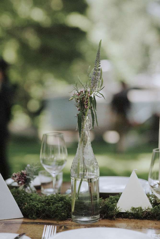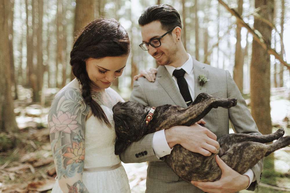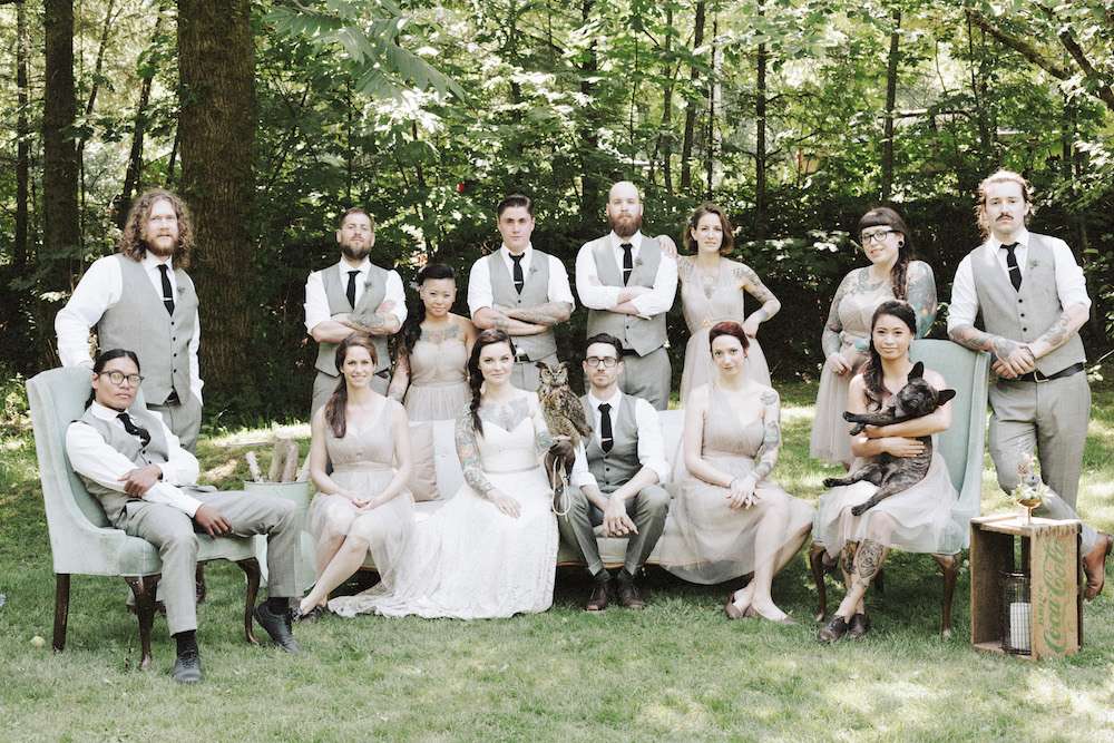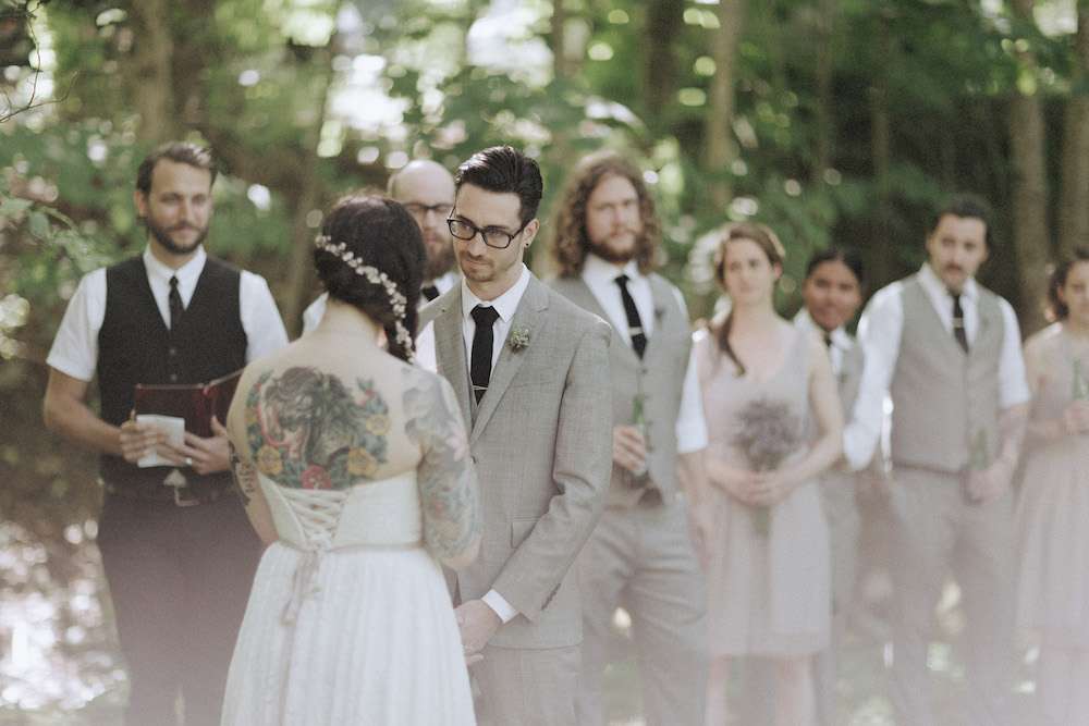 Tara and Aaron had a woodland wedding in Canada. They wanted their day to feel natural, organic and to be as enjoyable for their guests as possible. “The theme for the day was really brought to life when I chose my wedding dress”, Tara said. “It was dip-dyed so that it had a very subtle purple ombre. That was the moment that our colour palette was chosen. We used lavender, grey, white and green. We wanted everything to look very natural since we were in the woods.”