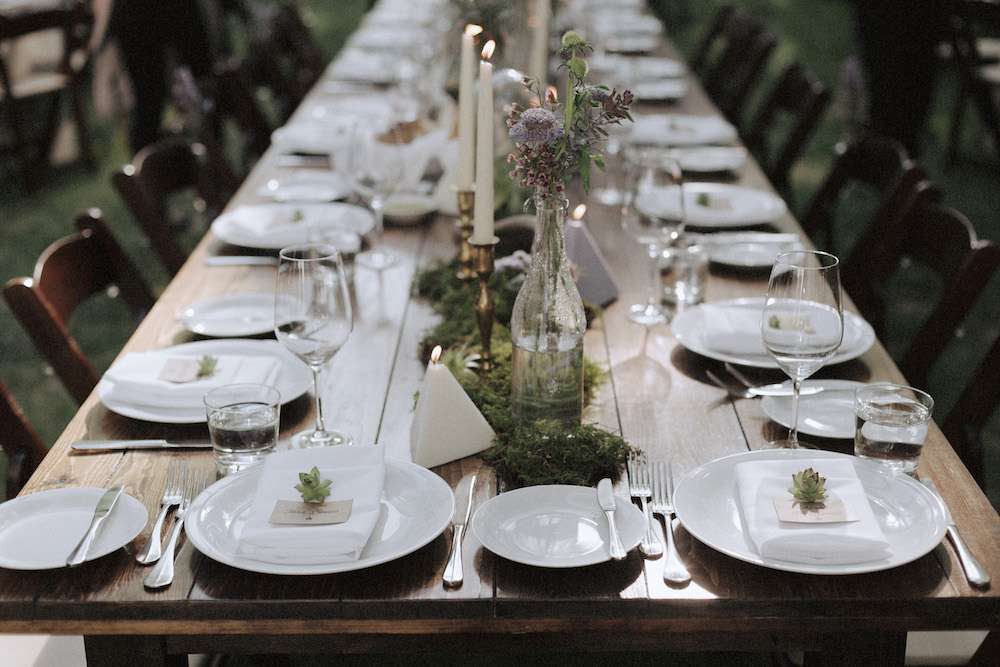 Having an outdoor wedding, meant the couple and their suppliers had to do everything, which was a lot of work, but to them, totally worth it. “We both loved our venue, but I do not think either of us were aware just how much work an off-site wedding would be. I would have liked to know what we were getting ourselves into ahead of time. Getting married in a place with no ready venue, everything needed to be built up from scratch. There were expenses that we had not expected that would have been nice to plan for in advance. The largest expense (by far!) was our catering. Off-site weddings will generally mean that a kitchen will need to be brought in for the caterers to cook. Food quality was really important to us, and Aaron is vegan so we also needed to find a company that could meet his dietary needs.”