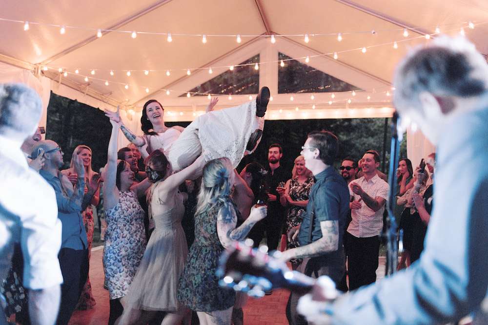 The bride’s favourite moment of the wedding was actually the next morning, waking up for the first time as man and wife. “I think the best memory from the wedding was the next morning laying in bed together and going through all the photos of the day that our friends had taken”, Tara explained. “Aaron and I were truly happy that day and that happiness was reflected back upon us by our friends’ smiling faces. I just laid there and said to Aaron ‘We did it! We pulled off the most fun, most perfect wedding!’ Our hearts were full, knowing that our family and friends felt the same way we did; that they took part in a moment that was truly special, and cannot be repeated.”