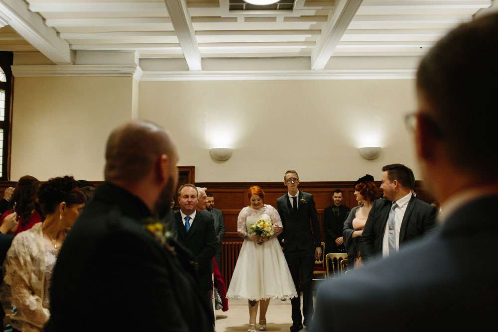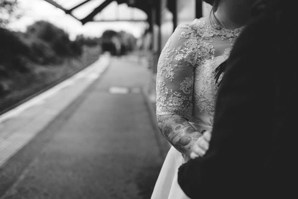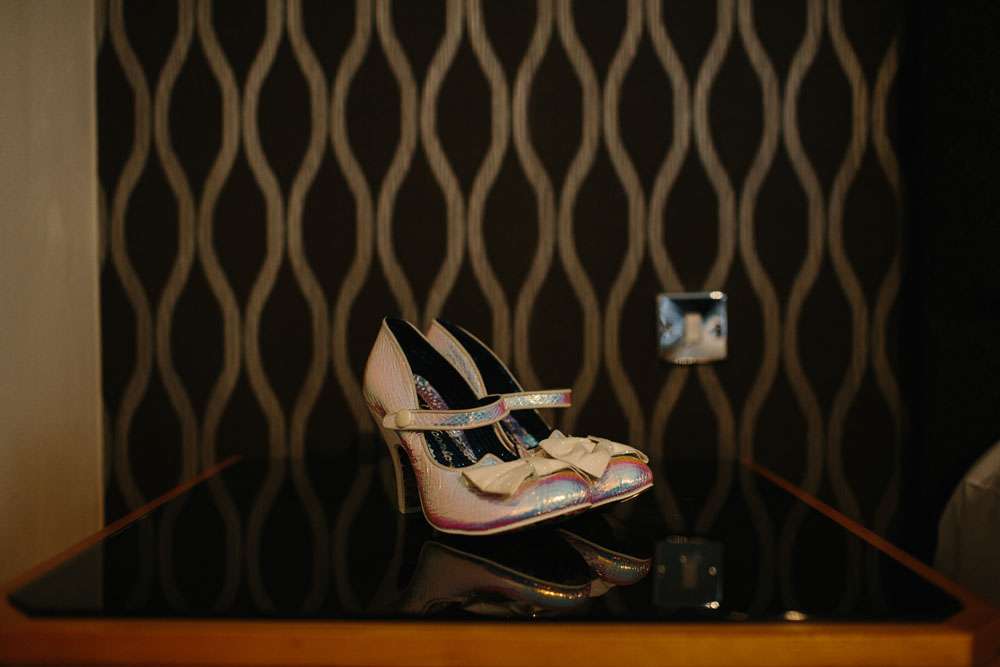 The bride wore a tea length ivory dress with sparkly bodice details, custom made by Flossy & Dossy. “Going into this, I didn’t think for a second that I would meet wedding suppliers that I would get on with so well”, she explained. “My dress designer Wendy made my visits to her a total joy. She was always on hand to offer helpful advice and more importantly to have a good giggle with. Same goes for our hella awesome photographers Sarah and Darren of SD Photography. The biggest thing I took from wedding blogs and magazines was to pick a great photographer and I’m so glad we did… well, we actually got two! We had such a brilliant time with them on our wedding day, it was like hanging about with great friends.”