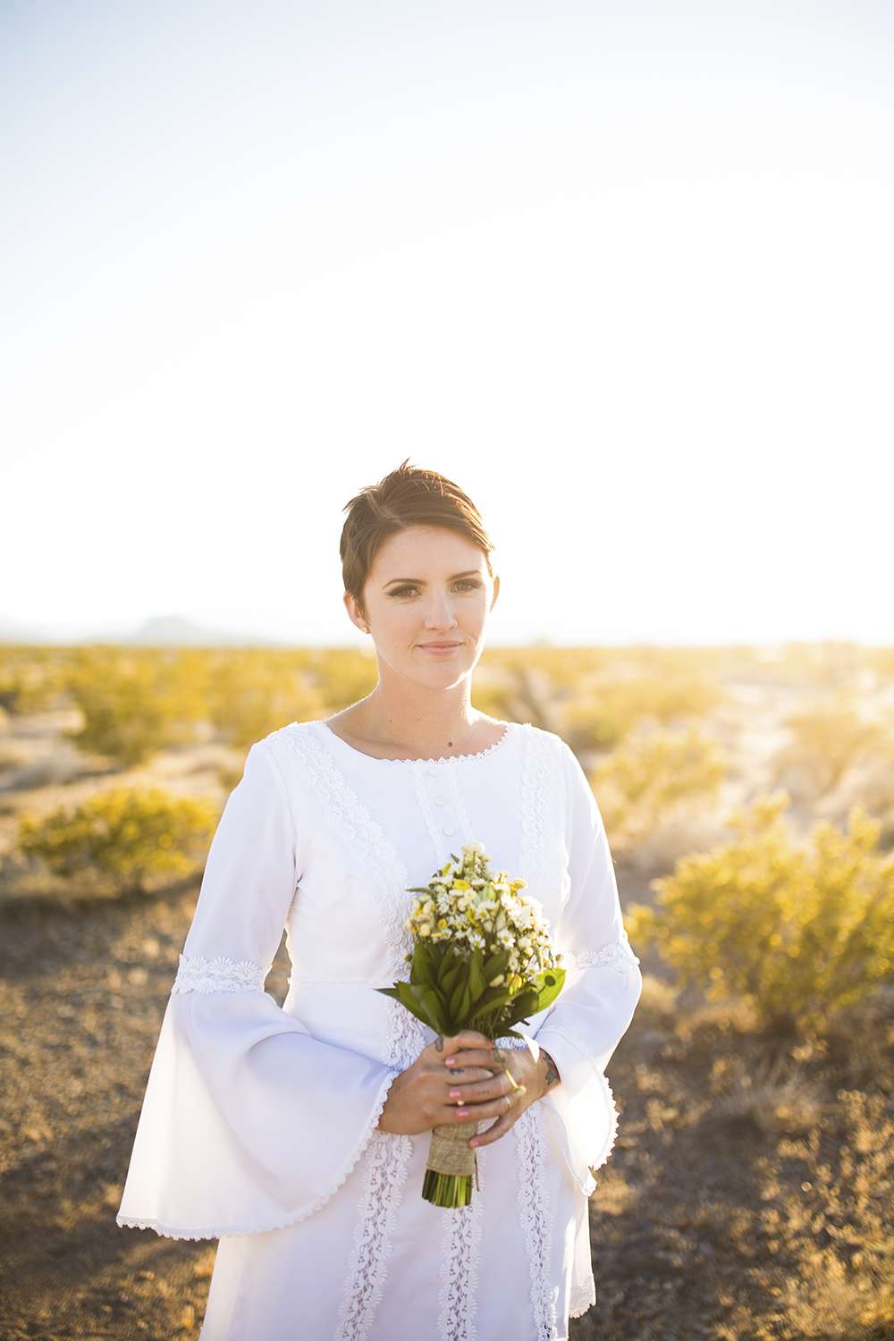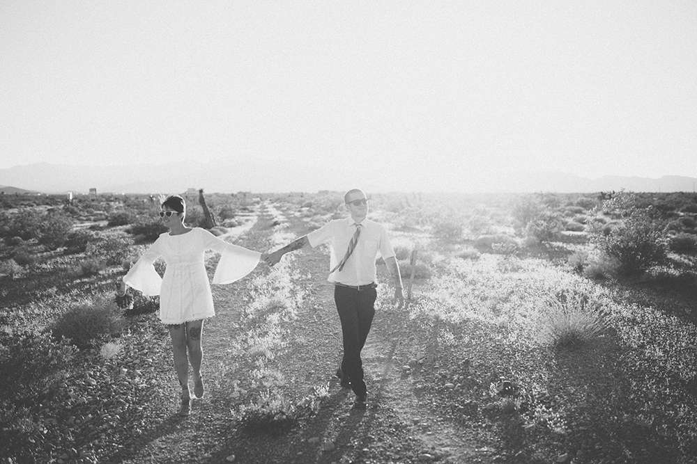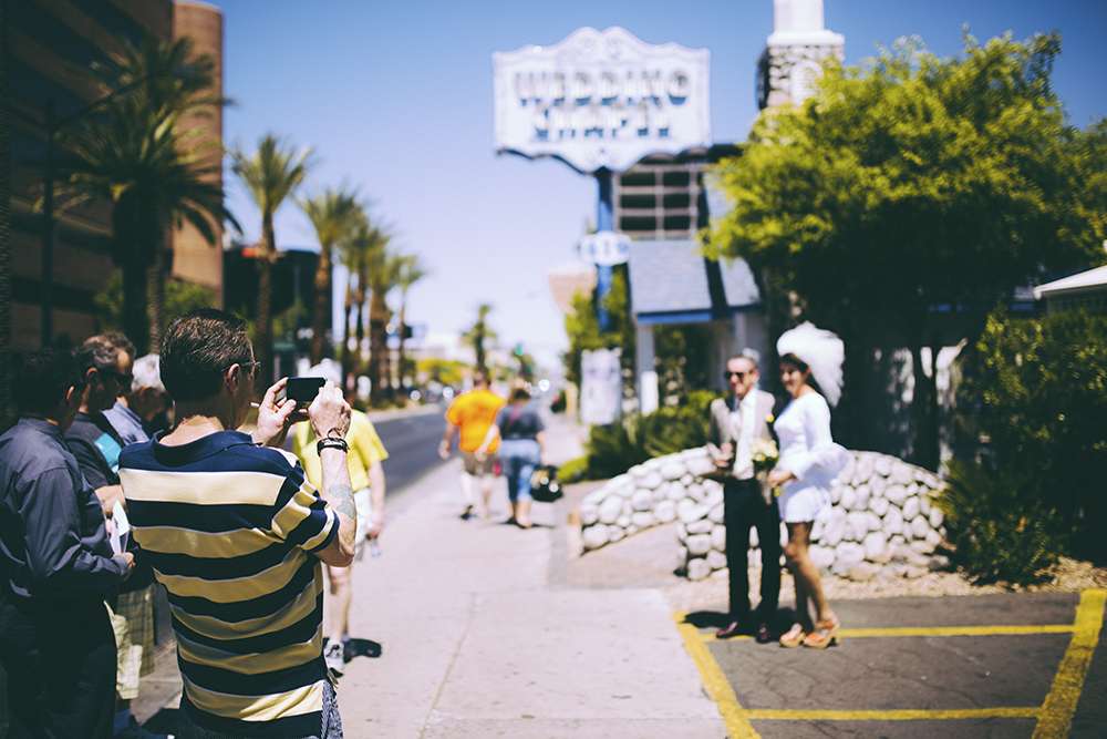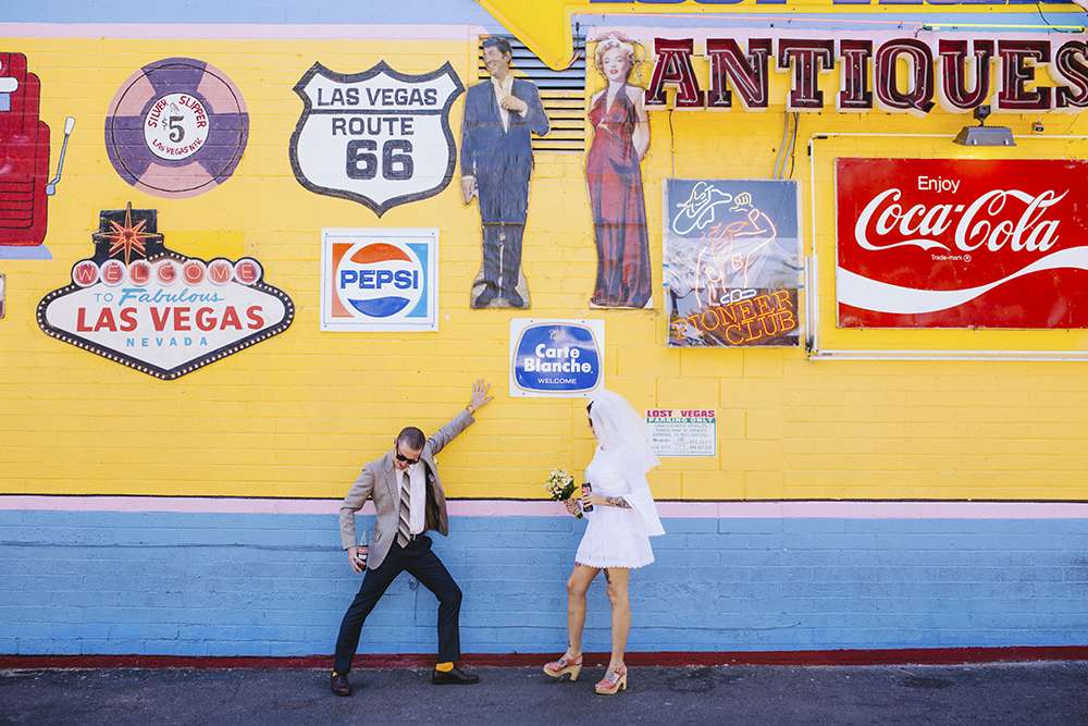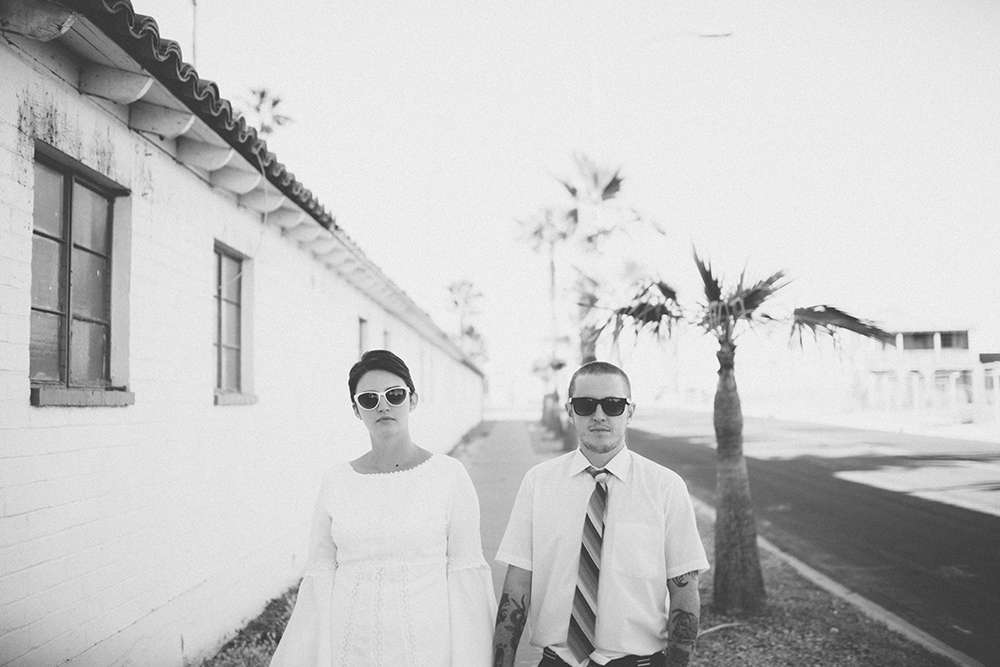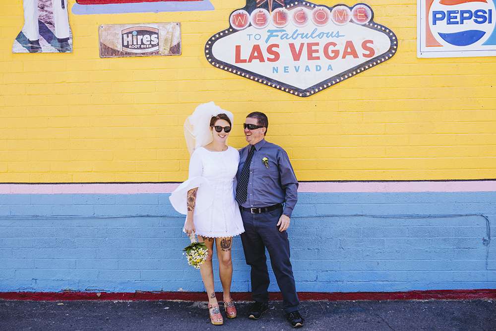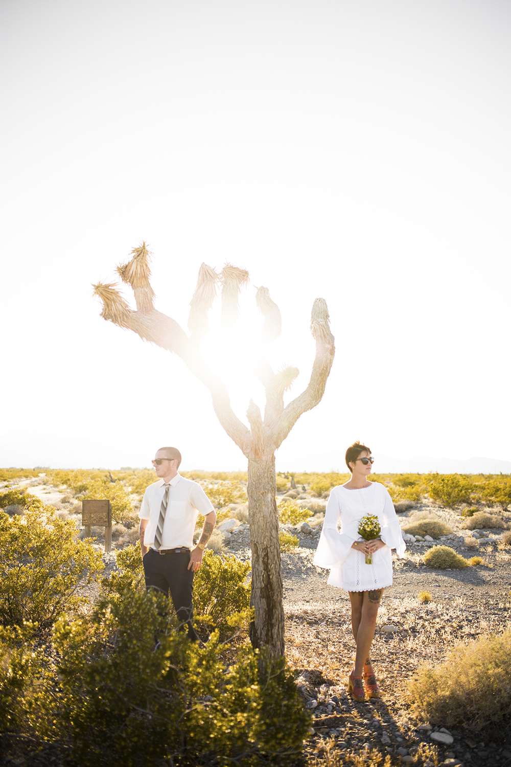 The ceremony was held at Graceland Chapel on the Strip. “In true trashy Vegas style we were in and out of Graceland’s chapel in 5 minutes flat! Elvis sang us a tune and we had a little boogie. It was perfect! After the ceremony we went with Sarah-Kate to do our photos.”