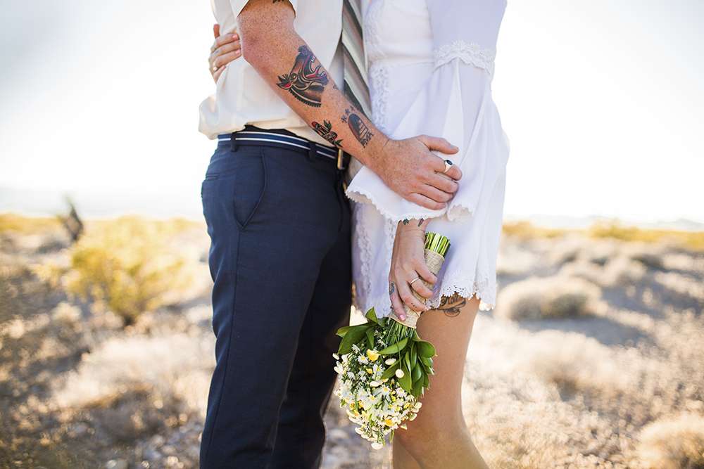 “Deciding to elope two months before the wedding was pretty exciting!” she continued. “We had a short whirlwind engagement that’s for sure! Dan is a tattoo artist so it was important for us to get matching tattoos to commemorate the day too. Another special thing was having Sarah-Kate, my friend and photography business partner, fly over with us from Australia to take photos. With such short notice only my Dad could join us on the day so it was special to have a friend capture the photos to take home to show everyone.”