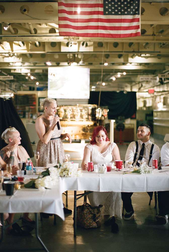 Chelsey and Ross were married on the USS LST 393 ship, which is now a veteran’s museum docked at on the Muskegon Lake waterfront in the heart of downtown Muskegon, Michigan. They couple, who started dating when they were 15, wanted their wedding to be classy, yet edgy, with a hint of retro and vintage styling.