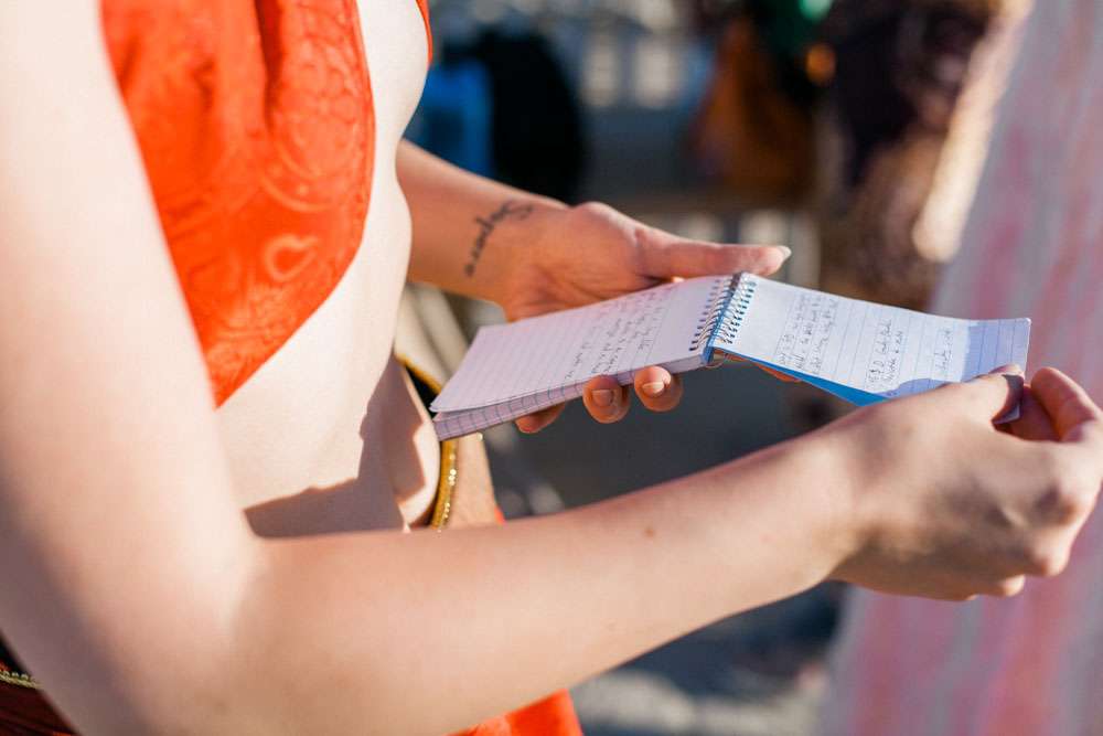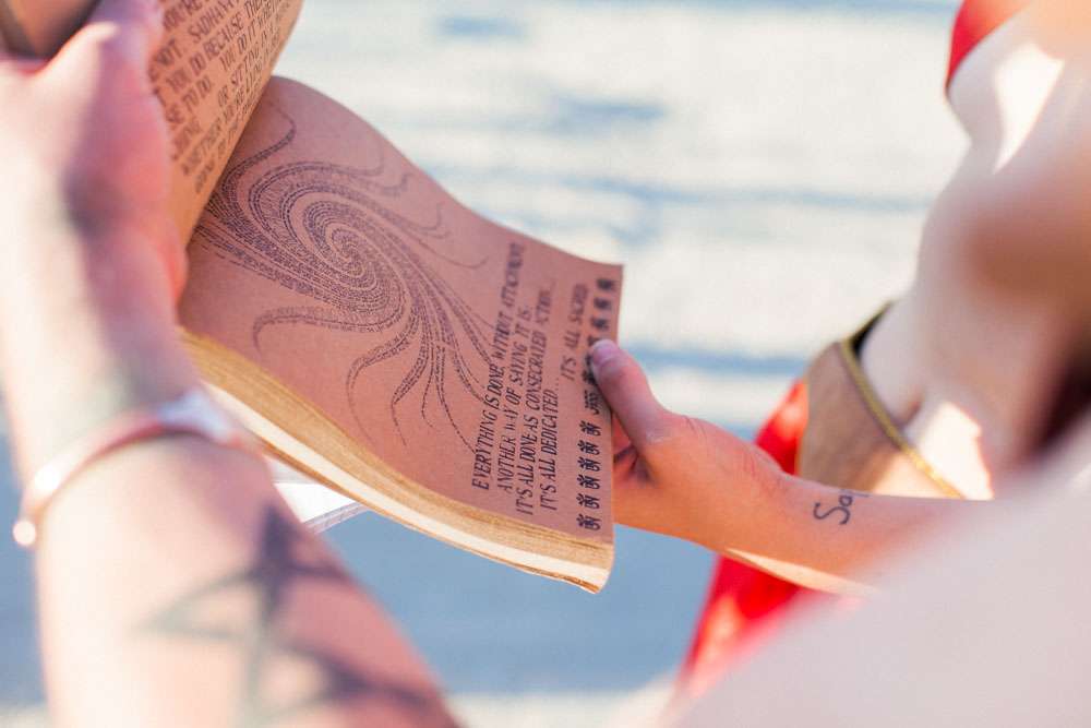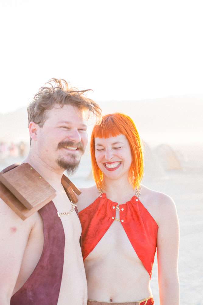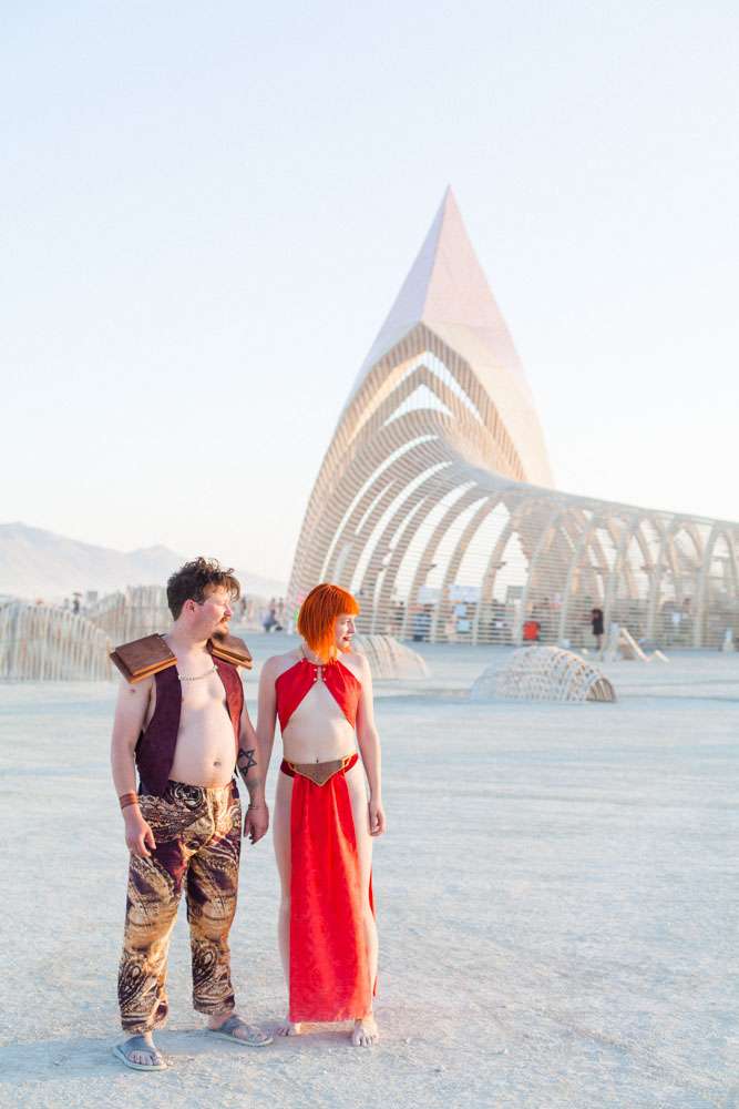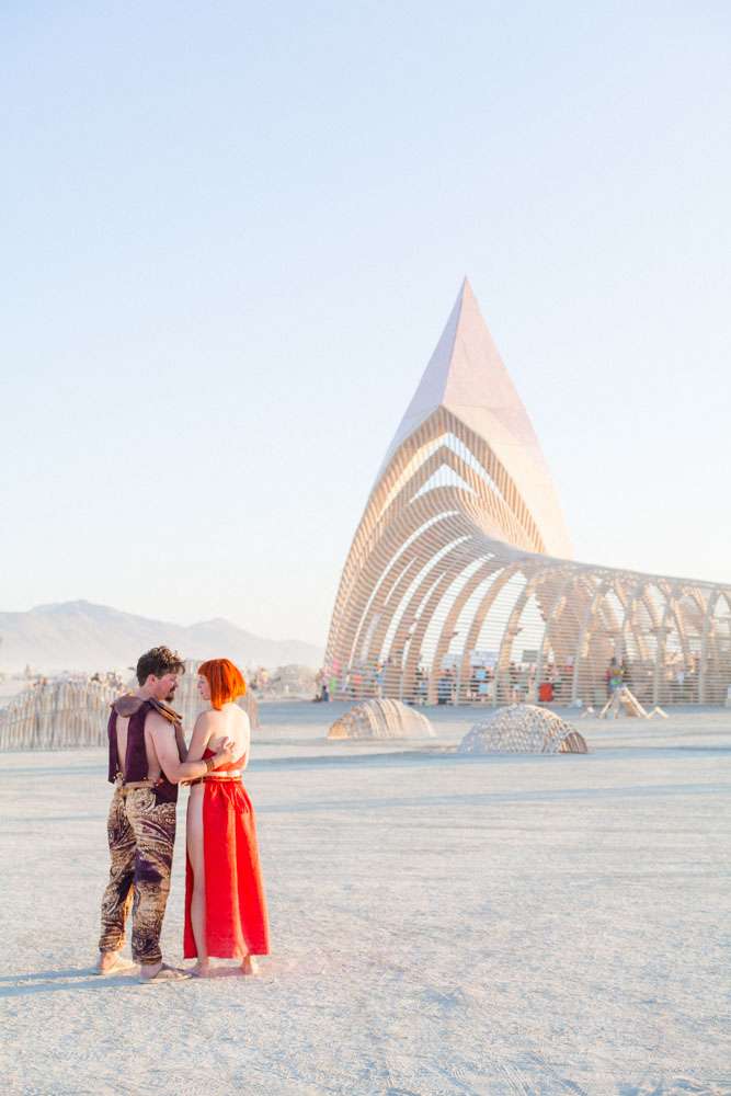 “We were married in front of the Temple in Black Rock City. We read our own vows in a ceremony we’d put together with our officiant and capped it off with a beer toast. After the ceremony, the designer of the temple approached us. It turns out he had walked by and stopped to watch the ceremony and was overwhelmed that we had decided to get married in front of his creation. Many hugs and tears ensued.”