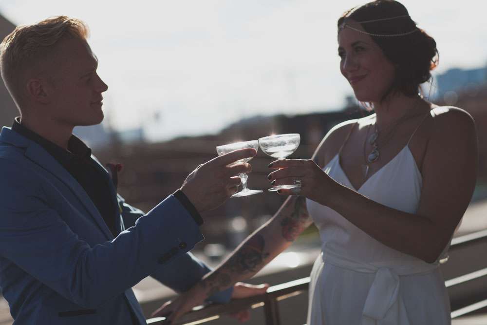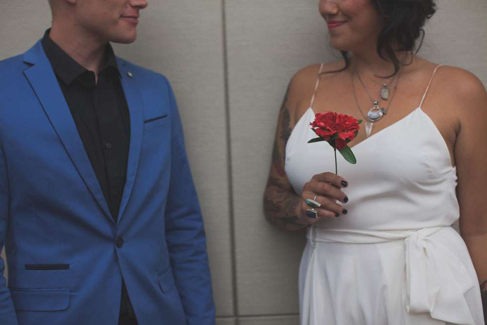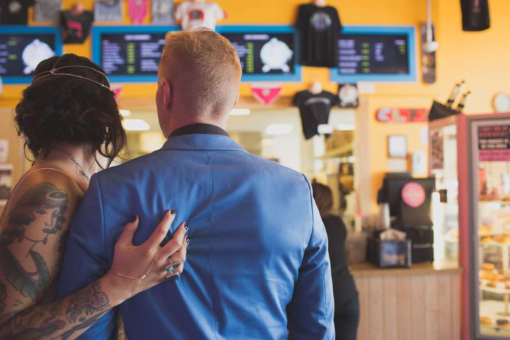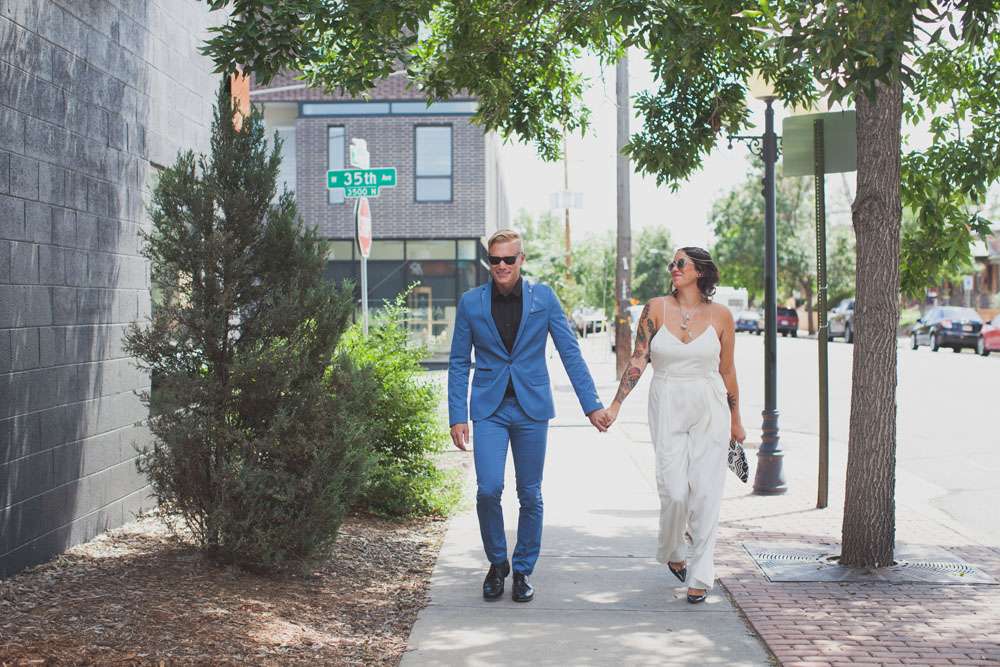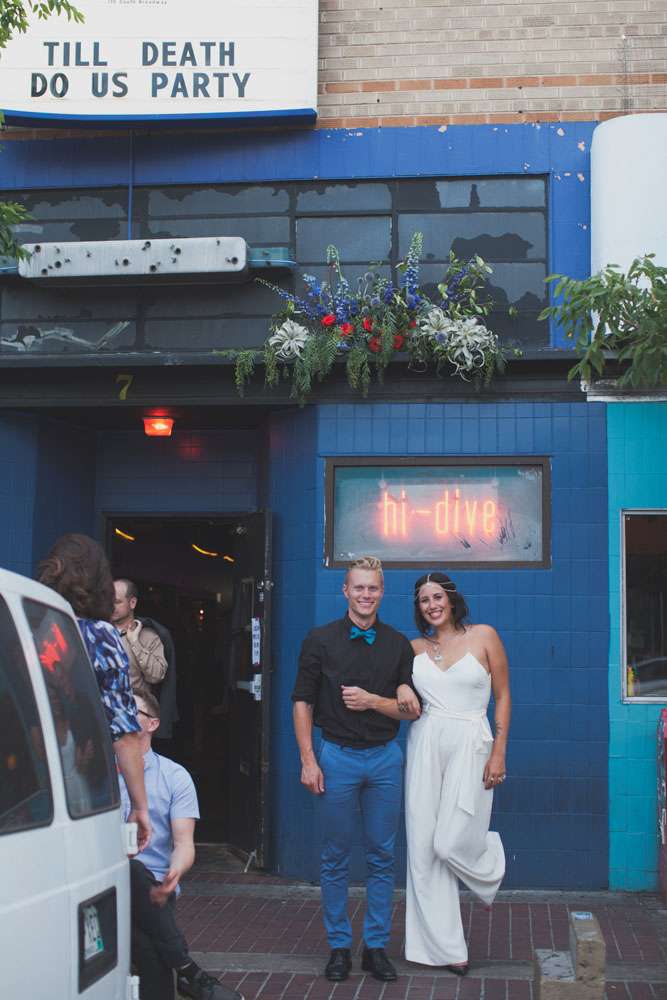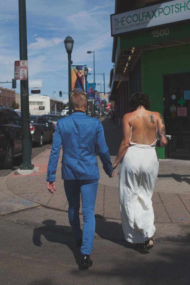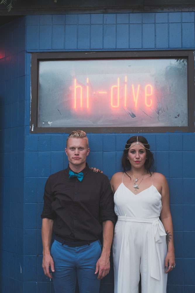 “We wanted to showcase a different wedding style and point of view, for those out there who are frustrated with the limited choices of more traditional weddings”, she continued. “So we shot all across Denver! We started at the downtown courthouse where the couple would apply their marriage license and then strolled to some of our favourite spots for photos. We then headed up to a rooftop for a private ‘ceremony’ and we capped the evening off with a reception and dance party at the Hi-Dive, a great bar and music venue in a lively neighbourhood.”