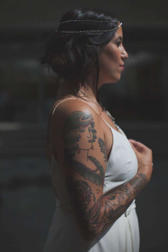“Our goal was for this not to be based on any wedding trends and we wanted to make this as realistic as possible. This is a wedding concept for a couple who are hip and stylish, love music, whiskey and cheap beer. They love the grittiness of their city, and don’t want a typical wedding.”