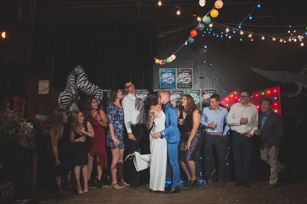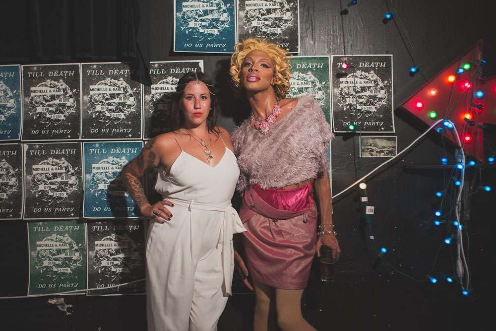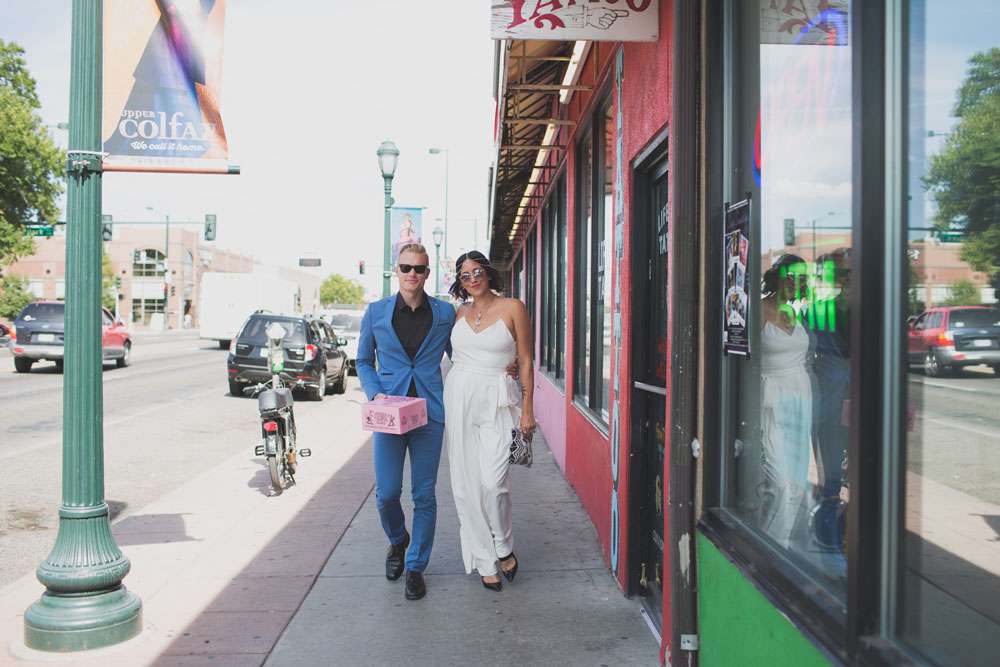 “We wanted to showcase a different wedding style and point of view, for those out there who are frustrated with the limited choices of more traditional weddings”, she continued. “So we shot all across Denver! We started at the downtown courthouse where the couple would apply their marriage license and then strolled to some of our favourite spots for photos. We then headed up to a rooftop for a private ‘ceremony’ and we capped the evening off with a reception and dance party at the Hi-Dive, a great bar and music venue in a lively neighbourhood.”