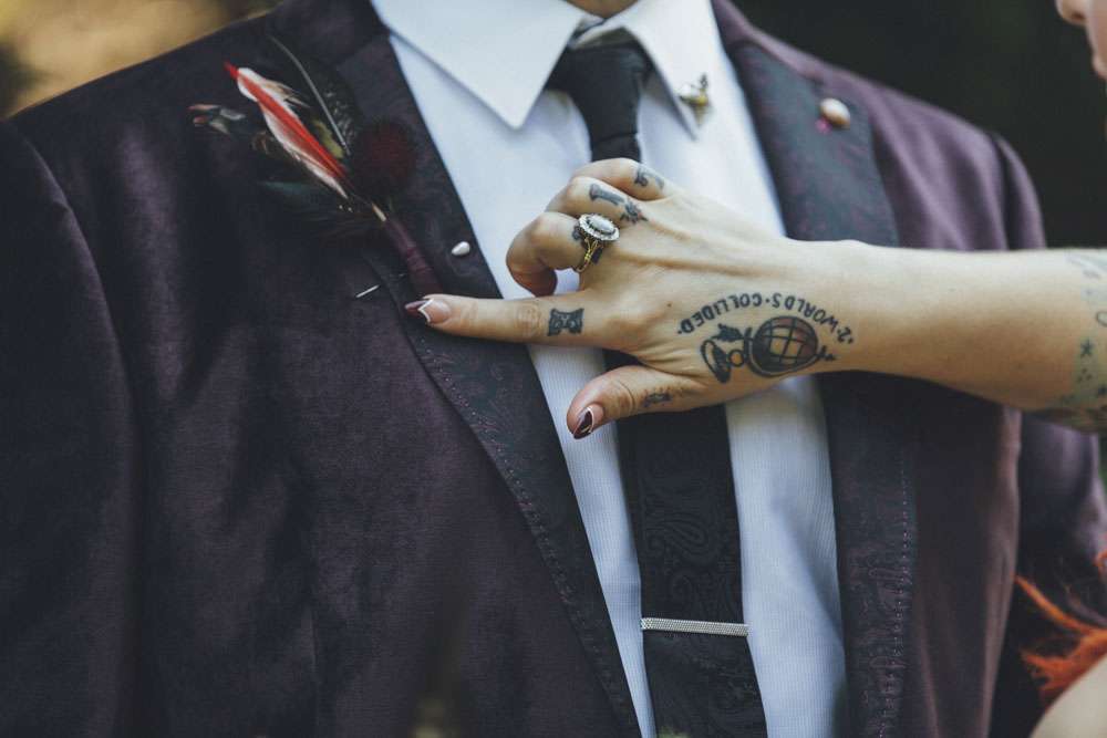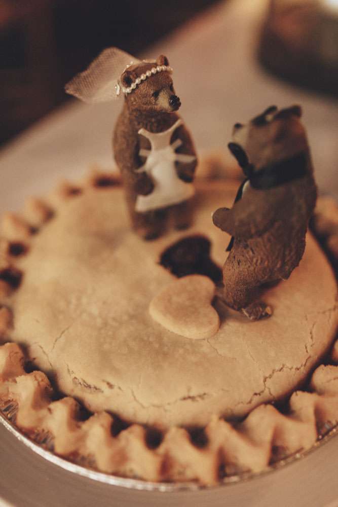 “We kept all the décor very simple”, she continued. “We used feathers as the remind me of my love of the English countryside. We had pheasant feathers, white duck feathers, burgundy turkey feathers, eagle feathers and assorted feathers dipped in rose gold and gold glitter. For flowers we only had my bouquet and a wedding arch. I asked that they both be as magnificent as possible, I passed on some pictures and the let the florist do her magic. We used antlers in our archway too and you will see a lot of bears reoccurring throughout our photos because bears are my spirit animal.”