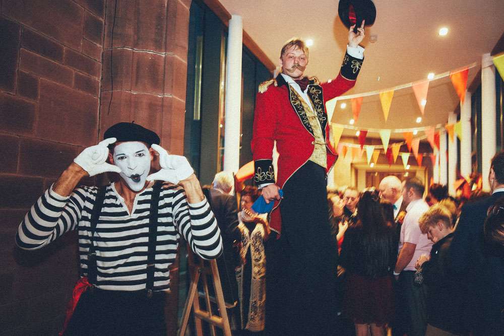 The bridesmaids were dressed as clockwork dolls in black tutus with pink cheeks, tea cup hats and keys on their backs. The homemade cake was flamingos and they served Afternoon Tea. The entertainment was mime artists, stilt walkers and fire eaters, The bride arrived by unicorn!