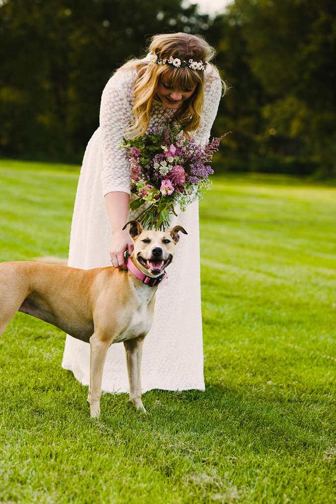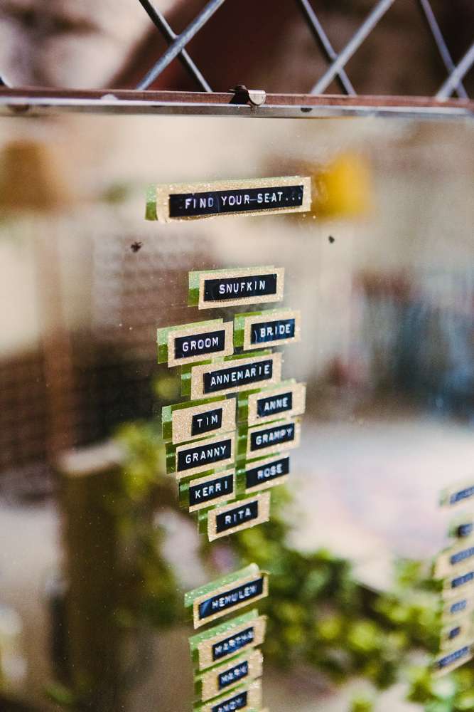“Almost everything was DIY! We didn’t want anything too structured or formal, so I was pretty confident I could handle the flowers myself. We made all the bouquets and table decorations the evening before, sitting around a fire pit by the barn, making a start on the wedding booze and eating dirty burgers with my extended family. We had so many flowers left over that we made extra bouquets; one for throwing, one for a friend who’s birthday it was, and one for a couple celebrating their wedding anniversary that same day! We also made the cake, the cake stand, custom labels for all our mixer drinks, the favours (mini bottles of homemade rhubarb gin), the light up letters and our seating plan.”