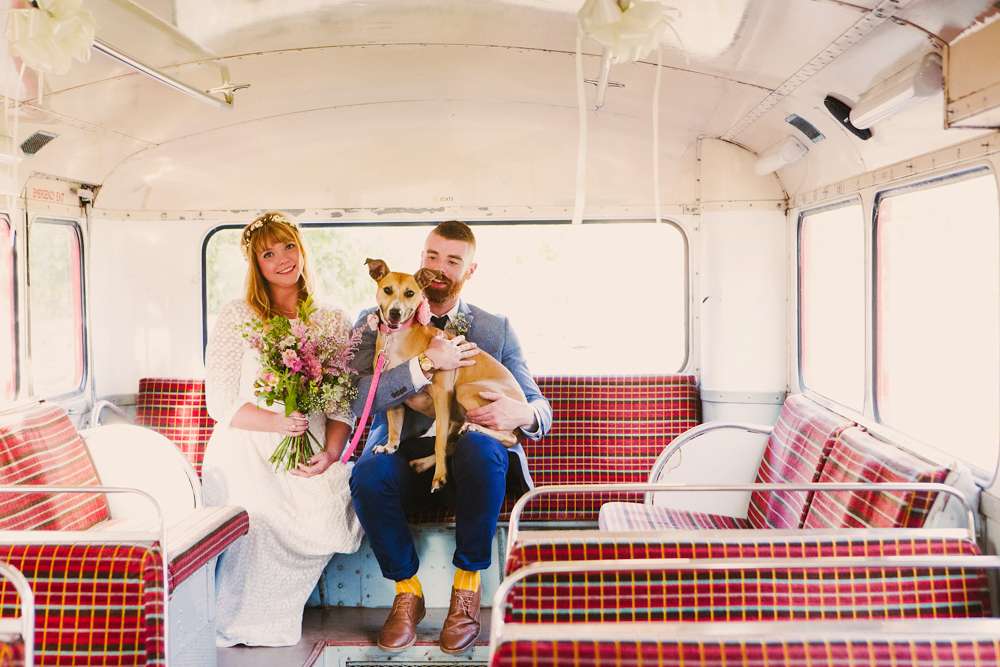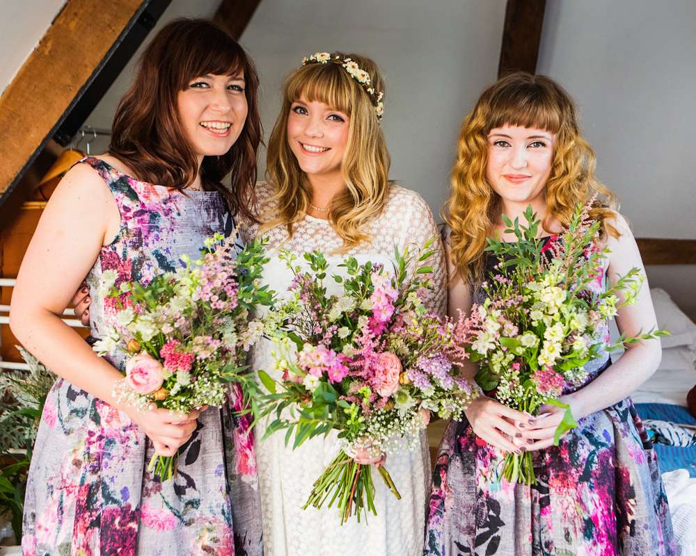 Cat and Andrew’s September wedding had no theme other than them wanting it to pay homage to the West Country, where they live. A lot of things were found cheaply or homemade. The bride wore a dress by La Redoute, the groom was in Topman and the bridesmaids, ASOS. The cake was made by the bride’s mum and they also arranged all the flowers themselves.
