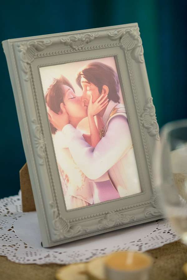 “Our guestbook was one of my favourite DIYs and was inspired by the books at the beginning of classic Disney films like Cinderella and Sleeping Beauty. The book was actually a book shaped box which I decorated and then we had Disney postcards for our guests to write their messages on and place inside. It went down really well with everyone and now it sits above our fireplace looking awesome, our very own fairytale book!”