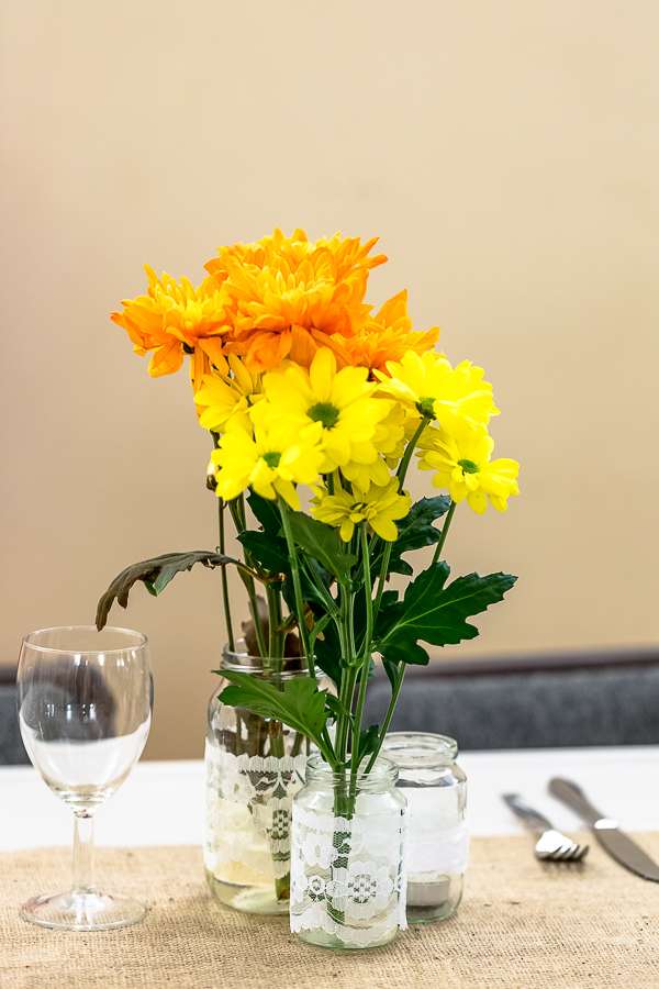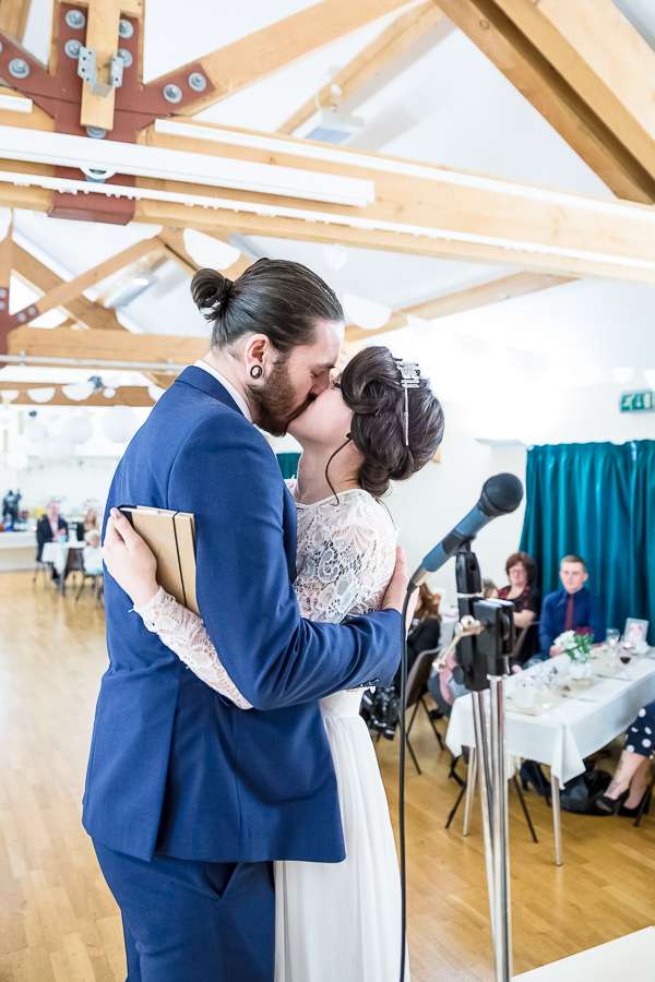 Both the ceremony and reception were held in a local village hall. “One of the things we did which was a bit different was to have my mum officiate our ceremony”, Kirsty explained. “I know a lot of people opt to do the legal bit at another time and have a humanist ceremony, but I think more should consider having a family member or close friend do the honours. Having her write (with a little help from me) and perform the ceremony meant that we could cut out all the rubbish that we didn’t care about and have a truly special and personal ceremony that perfectly reflected us as a couple. Plus I think our guests appreciated it being short! Me and my mum are really close so it meant a lot to me to have her so involved with our wedding.”