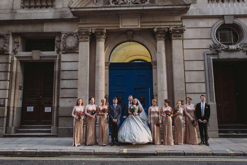 Imogen and Jordan were married on 31st October in London. The wedding was inspired by art deco, Autumn and, of course, Halloween! However they didn’t want their day to be too themed, so they went for subtle touches such as glittery pumpkins and the bridesmaids wearing black lace masks for the ceremony.