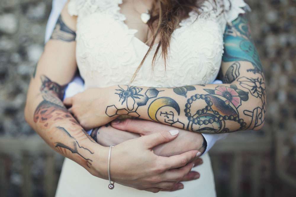 “We met just under seven years ago on Brighton seafront at a club night called Club NME!” the bride began. “I was 18 and he was 23. I was his first girlfriend so we feel like high school sweethearts.”