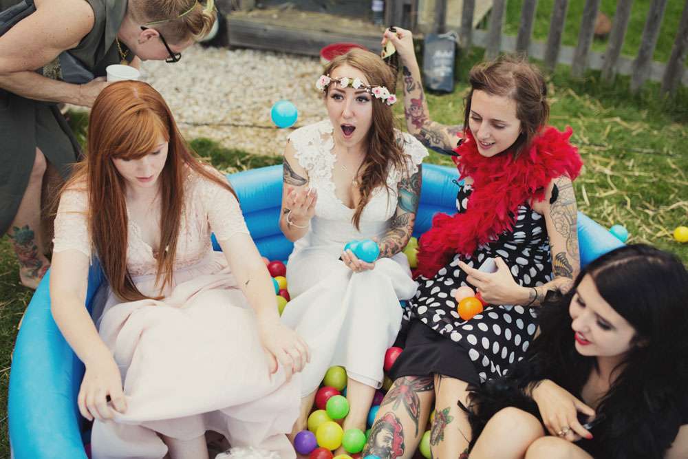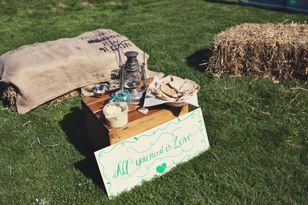 “We also got as many freebies as we could and were really lucky. We were given 40 empty gin bottles from a company called Brighton Gin which we made our own sangria to fill with as well as around 50 coffee hessian sacks from Horsham Coffee Roaster. We found that people were really happy to help out if you asked. We brought in as many props as we could from home such as jam jars for candles, pieces of wood that we painted, games etc. to keep people entertained. We really thought outside of the box and bought a cheap paddling pool off eBay and filled it with ball pit balls for the kids (and adults eventually)!”