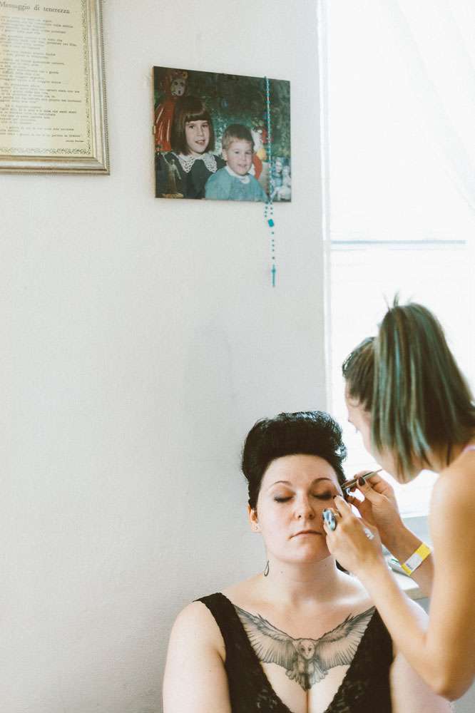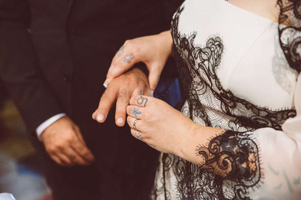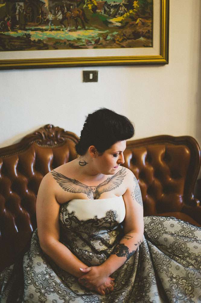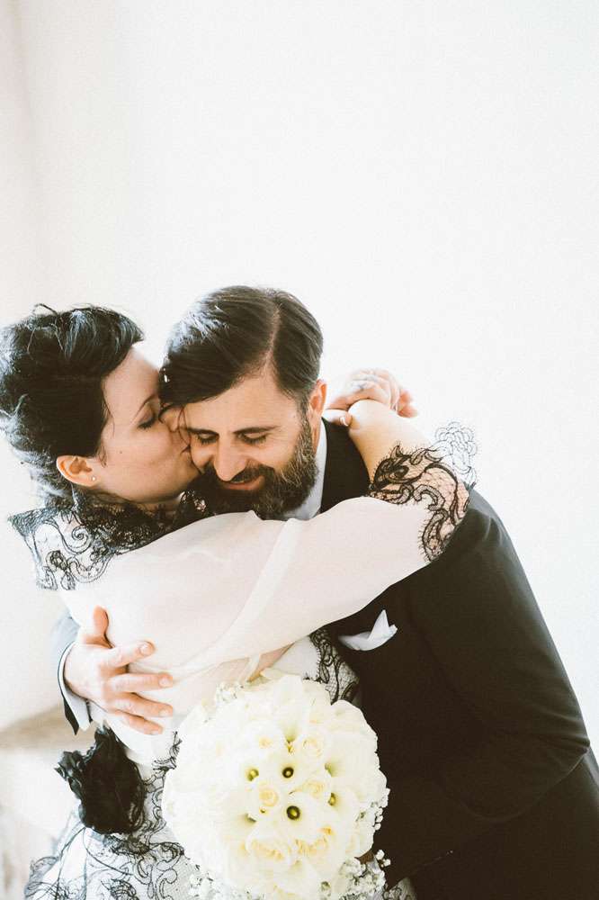 The bride’s dress came from Atelier Emé. “For an Italian wedding my dress was very unconventional”, she explained. “It was also the biggest expense in the wedding. When I tired it on I immediately knew it was the one. It was actually the first and the only one I tried. I didn’t know the price when I tied it on and initially I thought t was too much. But my parents told me to take it anyway. I wanted this dress not because it was expensive, spectacular or in fashion, but because I felt like me when I put it on.”