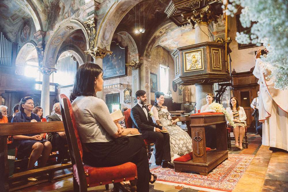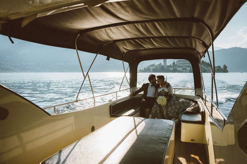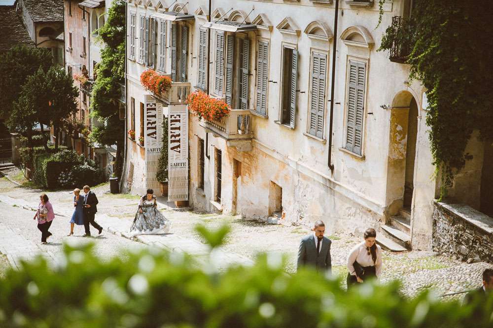 “In Italy the bride usually reaches the church in a beautiful luxury car whereas I chose to walk through the beautiful medieval village of Orta San Giulio, with my family”, she said. “After the ceremony we got to the reception venue by boat, that was incredible and my favourite moment of the day.”