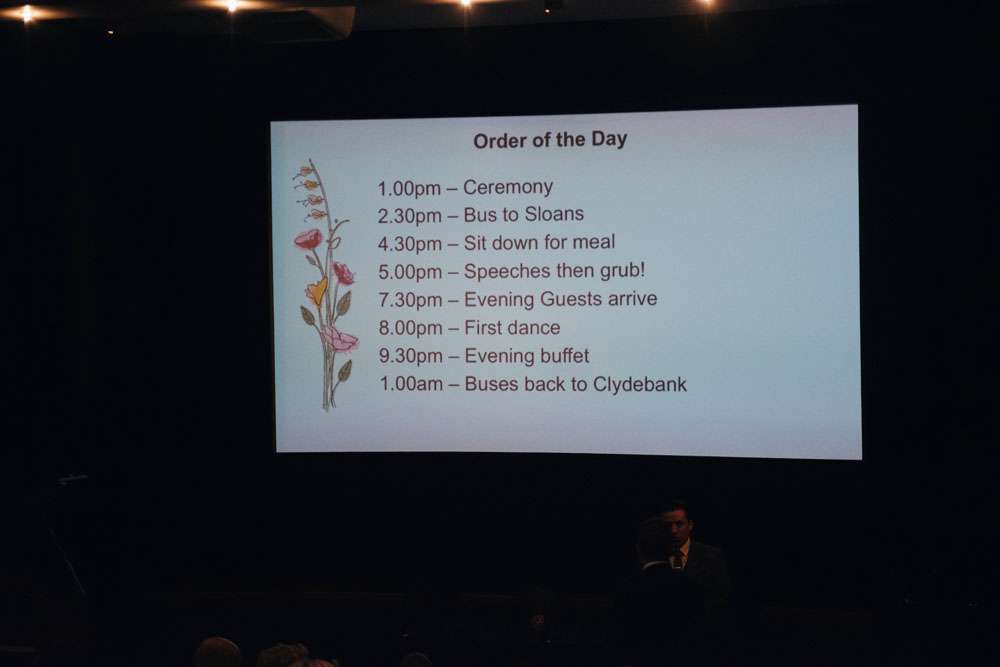 - Reception Venue: Sloans, Glasgow