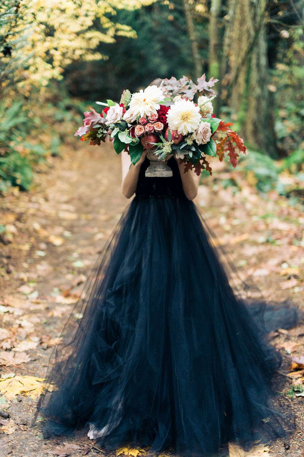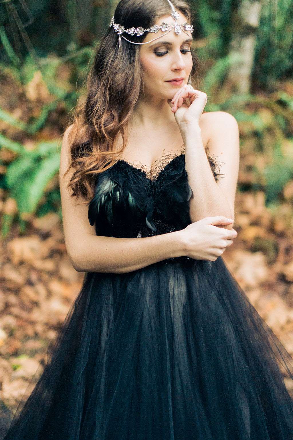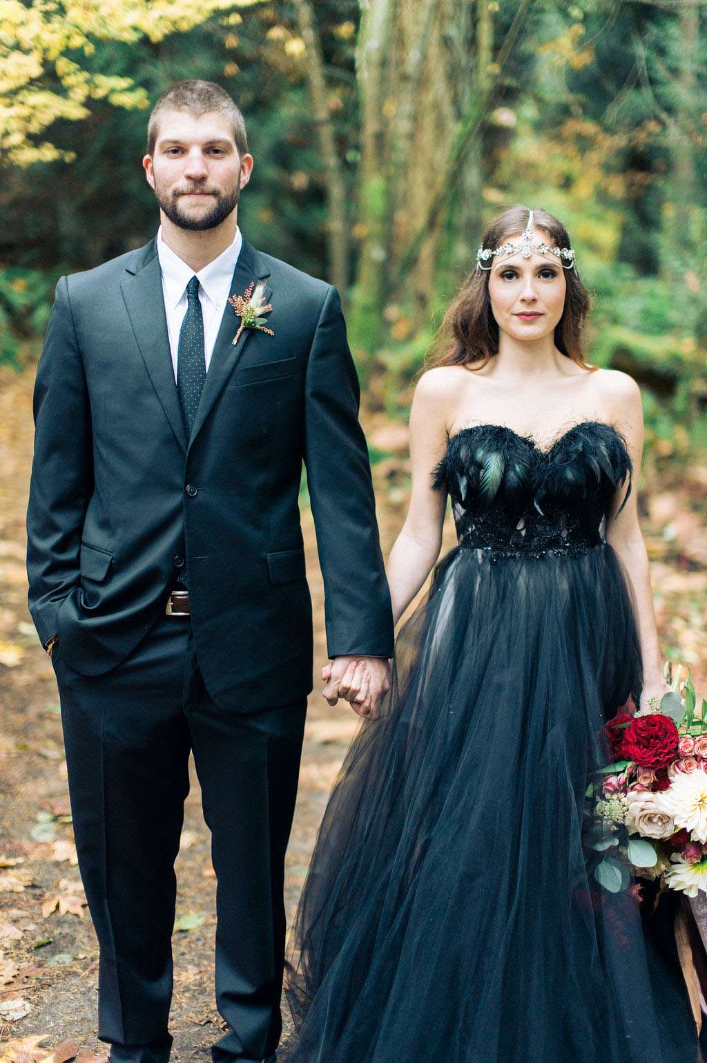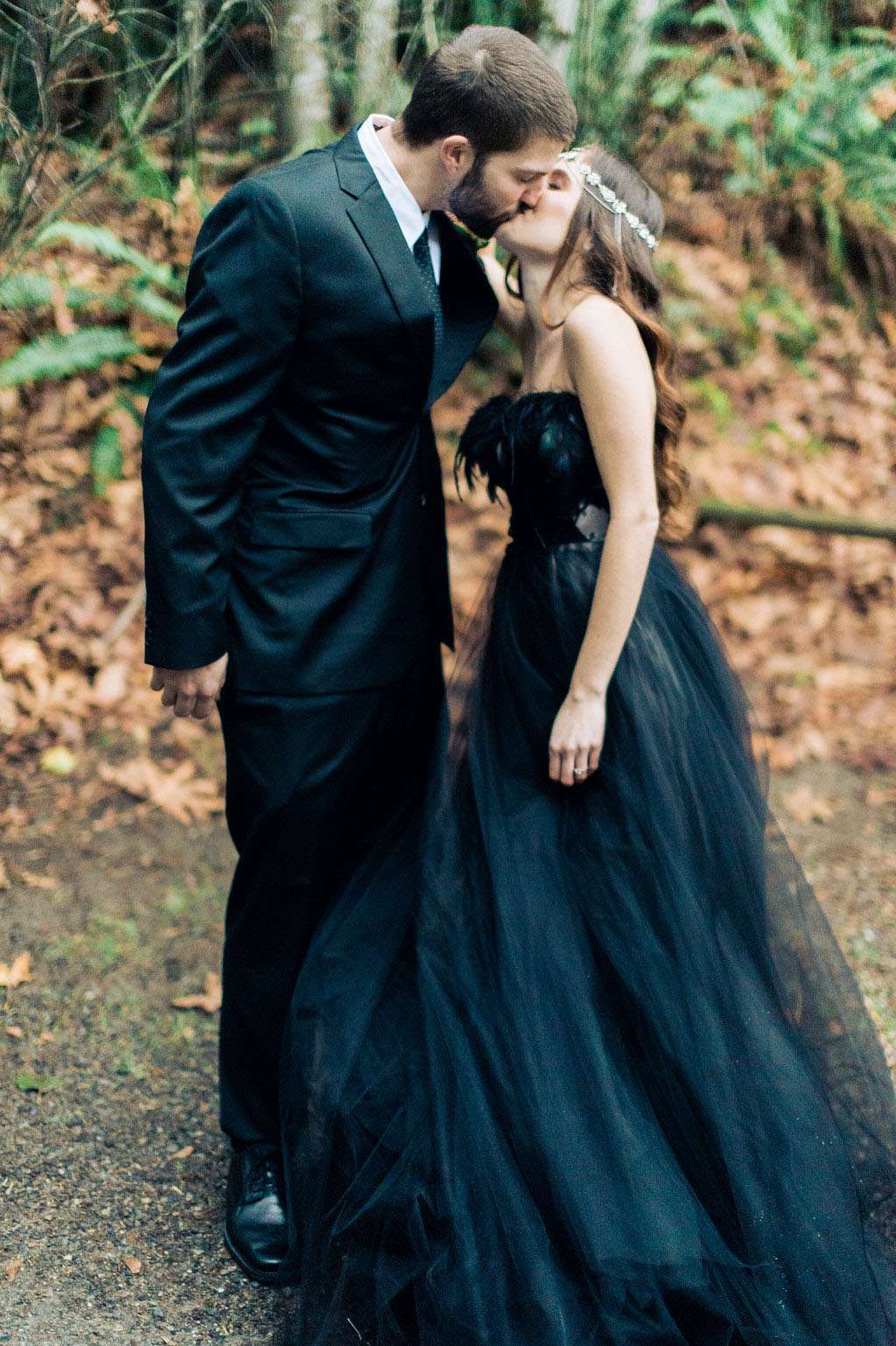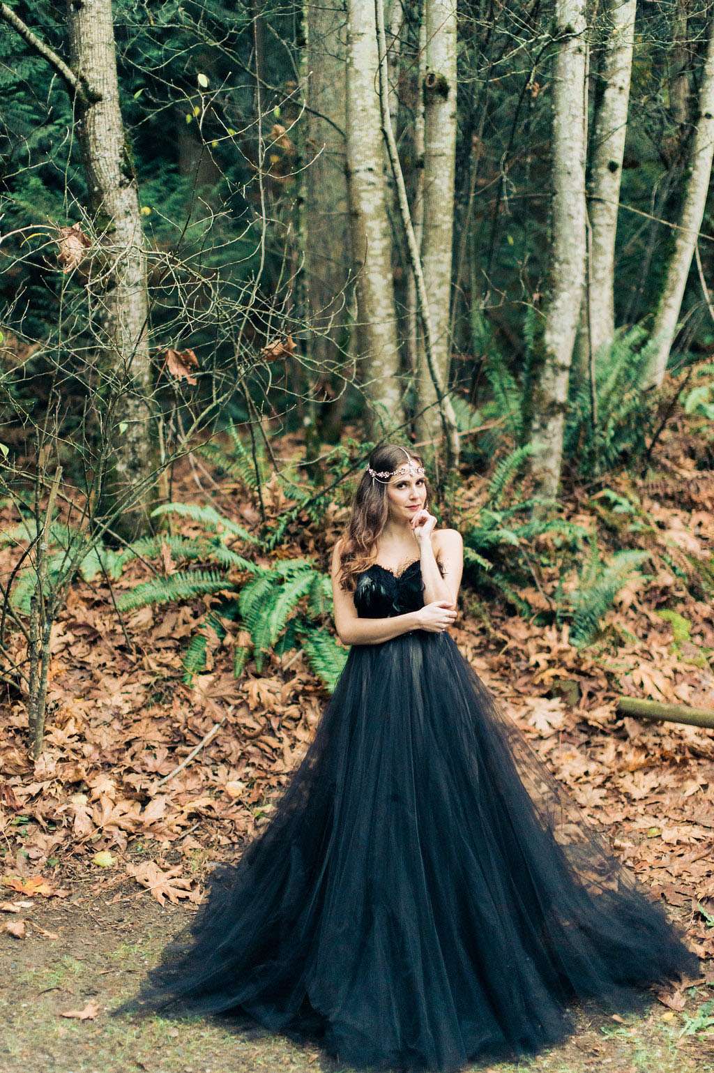 If you want to wear a black wedding dress but you’re more woodland nymph than gothic princess, you’re going to adore today’s photo session. Shot in the woods in the Pacific Northwest, the bride wears a show stopper black wedding gown by Claire La Faye.