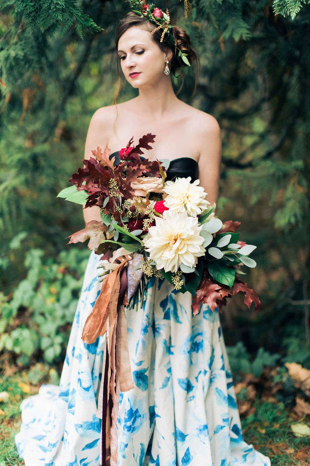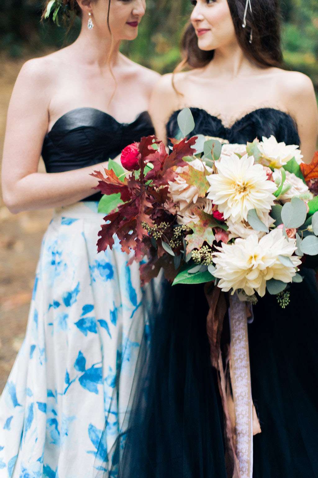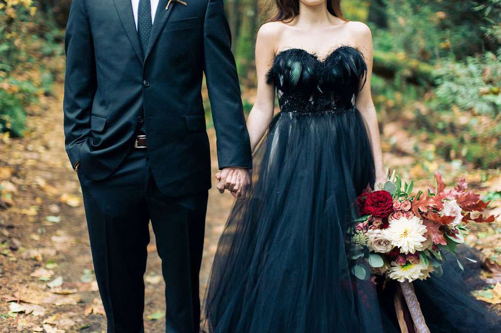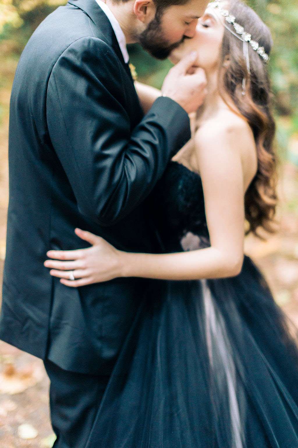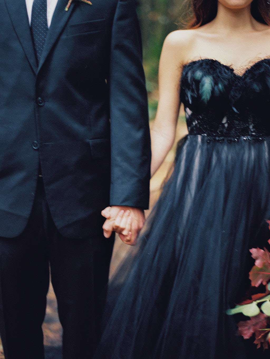 If you want to wear a black wedding dress but you’re more woodland nymph than gothic princess, you’re going to adore today’s photo session. Shot in the woods in the Pacific Northwest, the bride wears a show stopper black wedding gown by Claire La Faye.