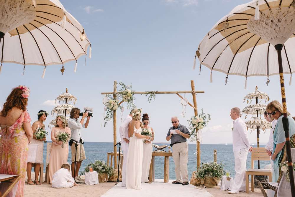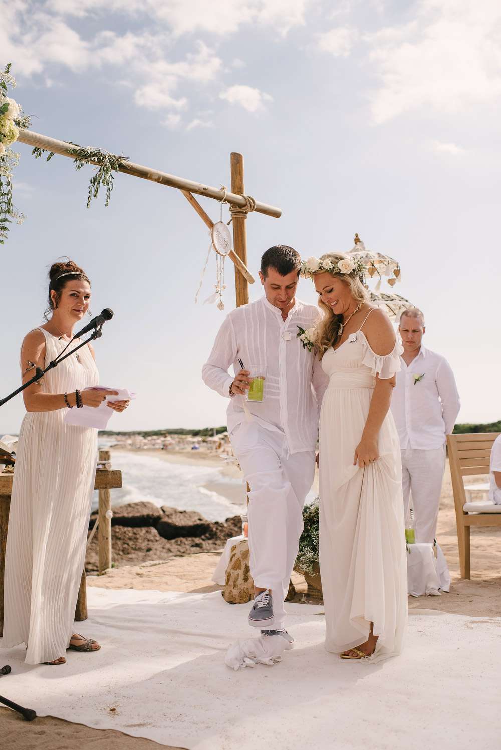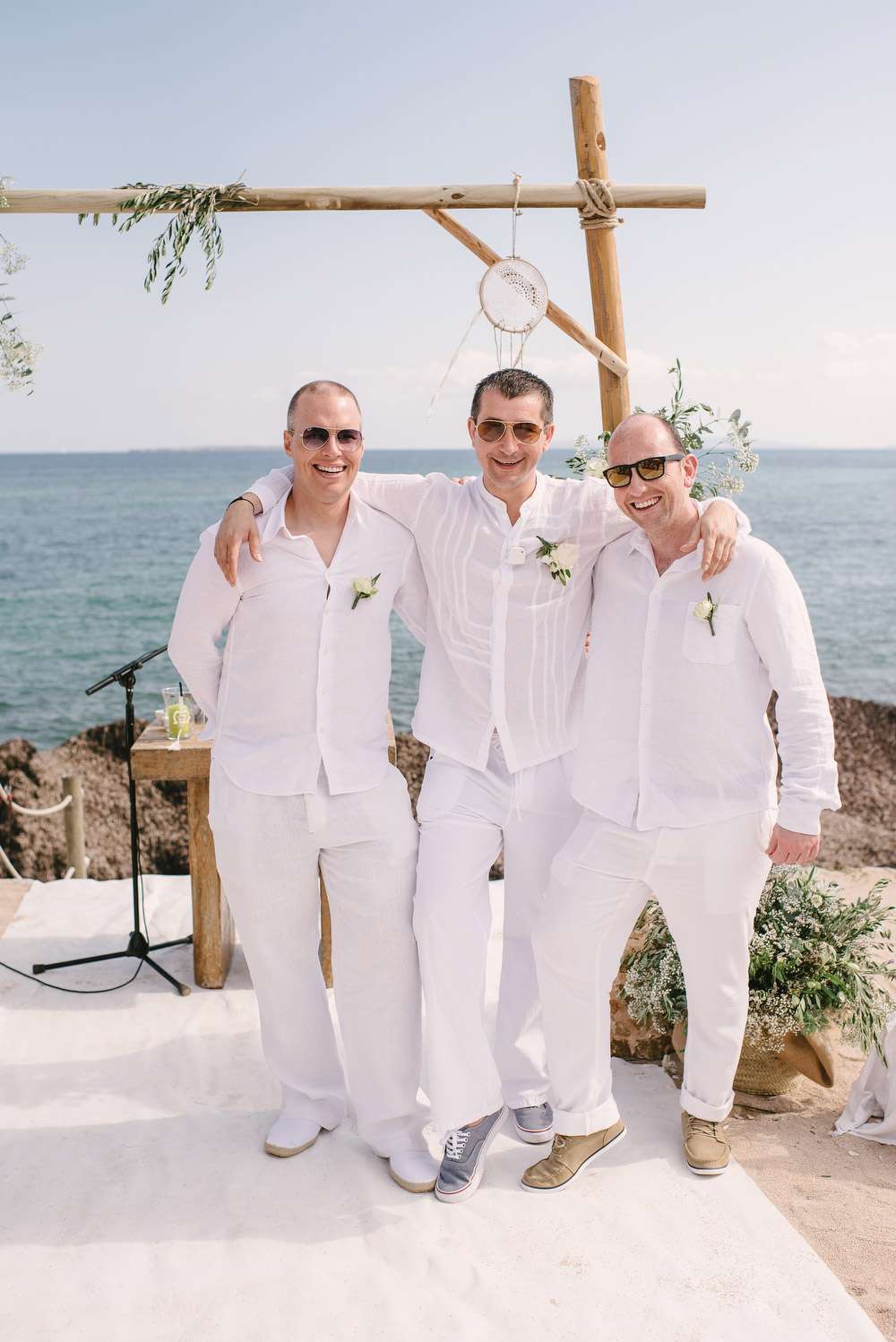 The couple were legally married in Islington Town hall in London (on Al’s birthday!) a few days before the Ibiza wedding. “We both always wanted a beach ceremony and to be outdoors and close to nature, so La Escollera was the perfect location”, she said. “It had rained a lot that week, but we were totally blessed on the day as the sun came out in its full glory.”