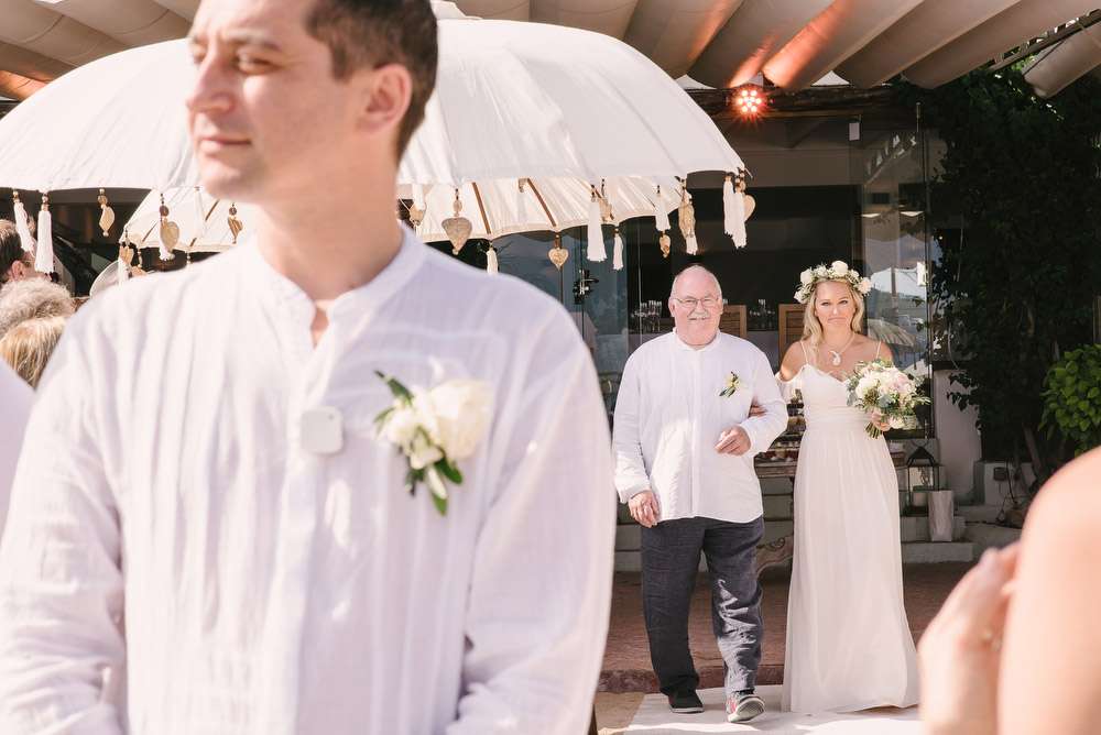 Al and Tony both love the sun, so they decided on a destination in Ibiza. “We are both sun-worshipping beach bums”, the bride said. “I grew up in Australia so the beach and the sea is in my blood, and Tony spent his younger years backpacking and chasing the summer. We go to Spain for a summer holiday every year and Ibiza is a special place for me due to it’s spiritual flavour, so it was the obvious choice for our wedding.”