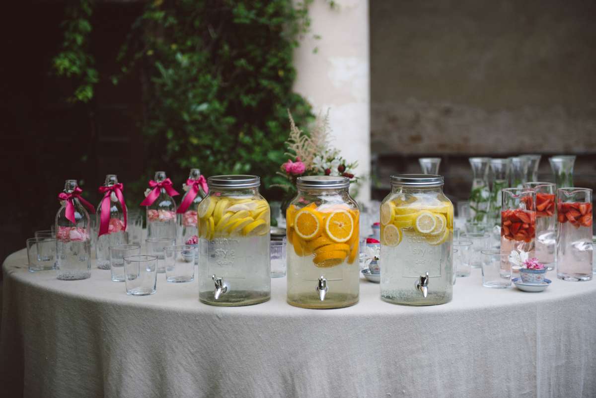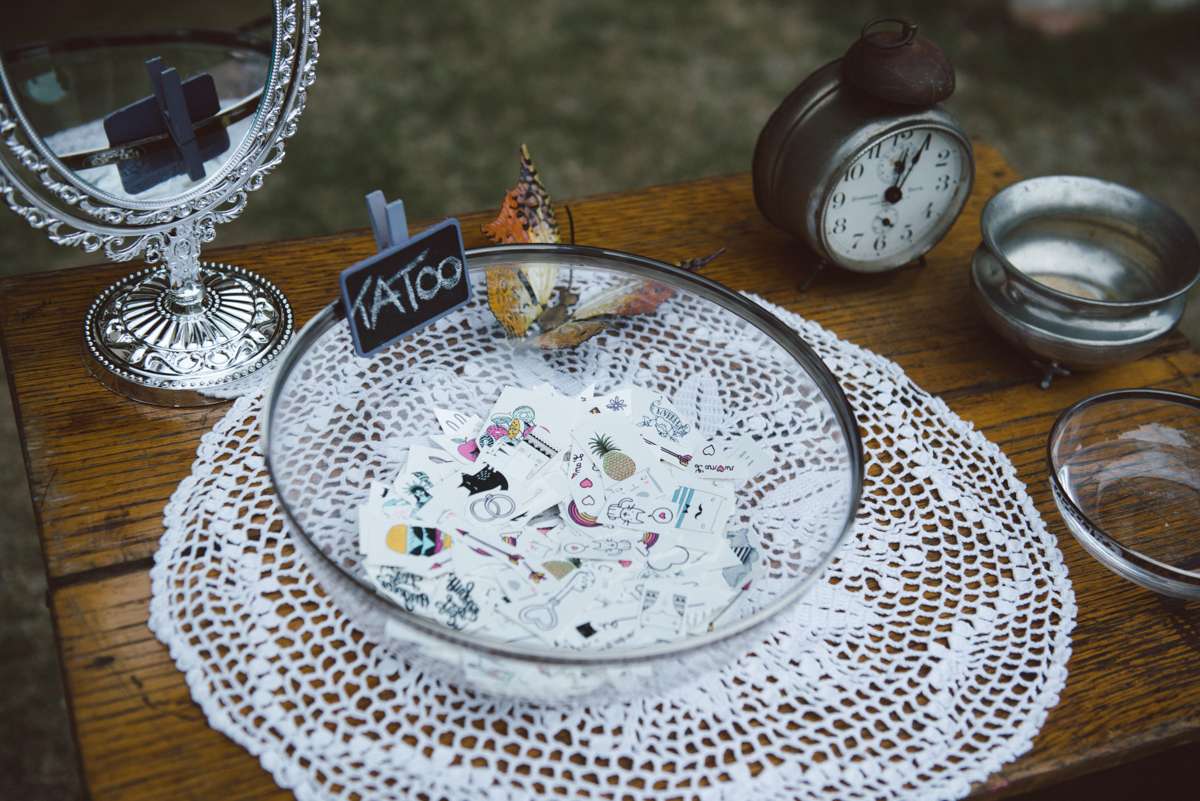 “Some of our favourite, and the most unique, details were the temporary tattoo corner, the flavoured water bar, the truck DJs, my pink dress, and the old tea cups with succulents in them.”