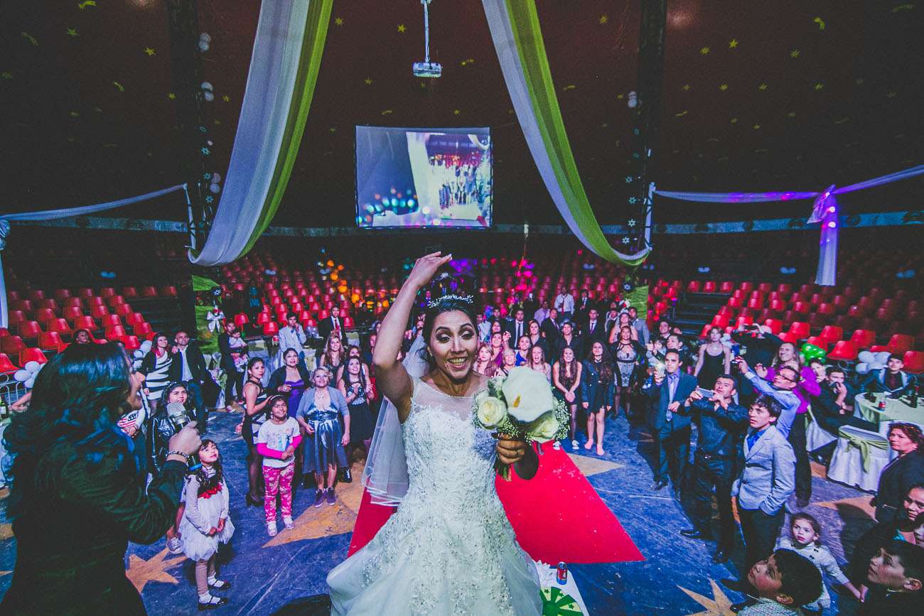 Both circus performers, Rocío and Benjamin they met doing what they love so it was only right that their wedding was also in held in a big top! “I am a trapeze artist and Benjamin is a clown”, the bride said. “So the style of our wedding was quite familiar to us. We all are circus people, very spontaneous and full of laughs.”