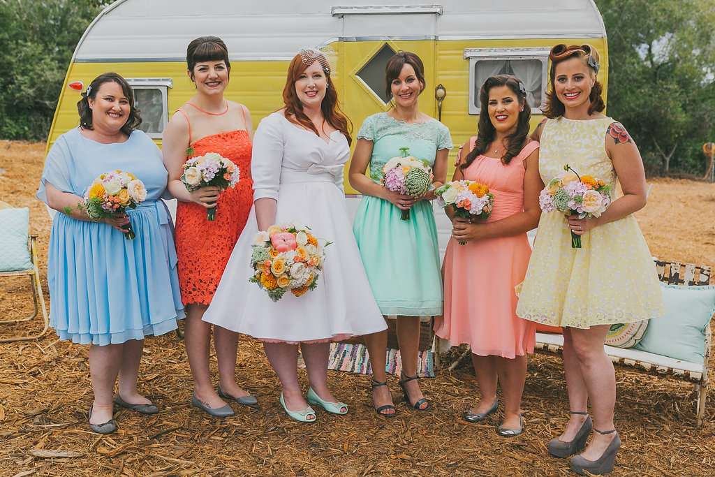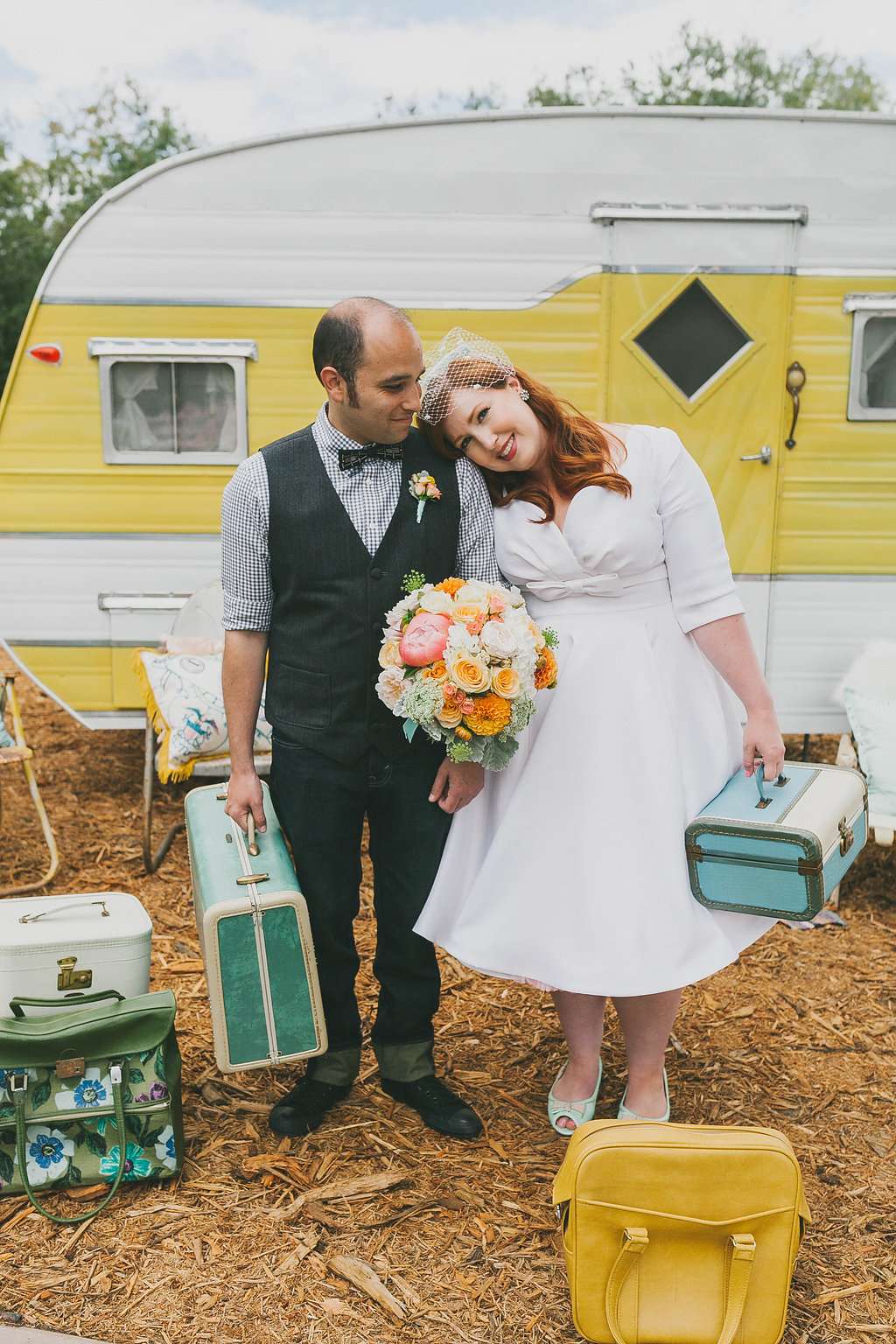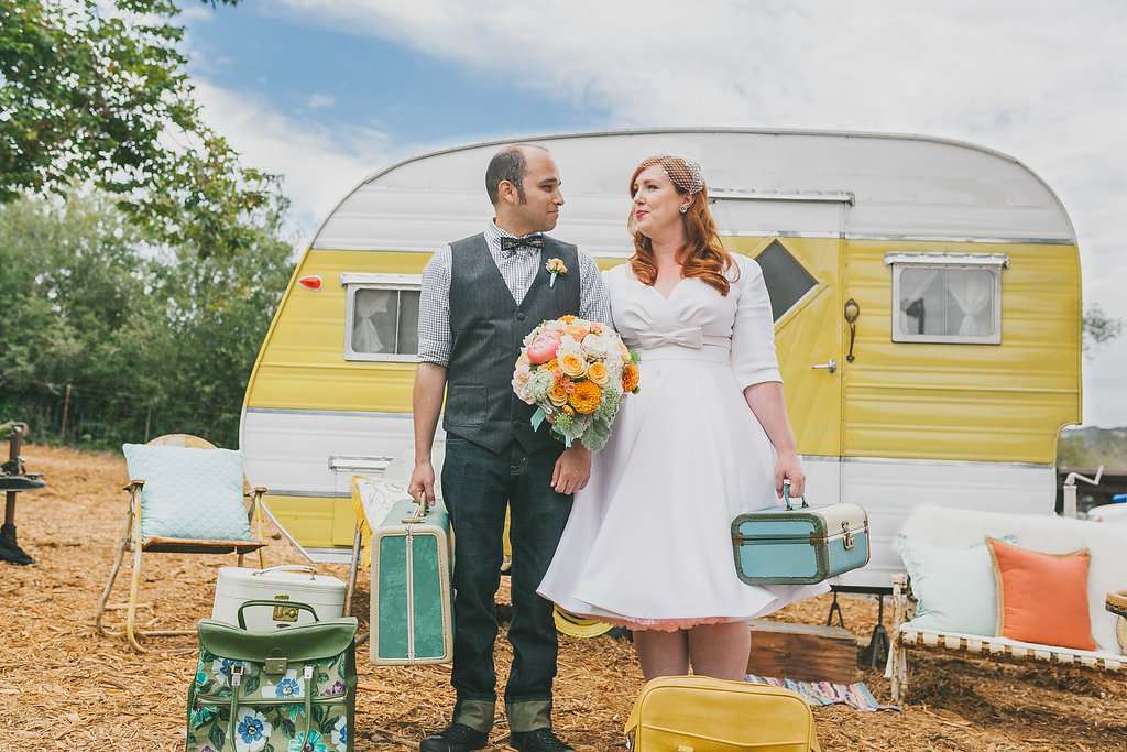 Melissa and Phillip’s summer wedding was held in the bride’s parents’ back garden. It had a colourful, retro theme and they had two vintage trailers!