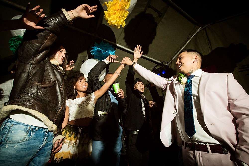 “Our cake was made by my mum and a family friend, the flowers were from a friend of my parents, my husband designed the stationery and all our friends helped with the set up and break down. The food was cooked by another family friend who is a chef. As a gift to us he only asked for expenses. Our DJs were friends too. We had four of them playing reggae, hip hop, funk and soul and house. We partied all through the night and when it got to around 4am we had a silent disco!”