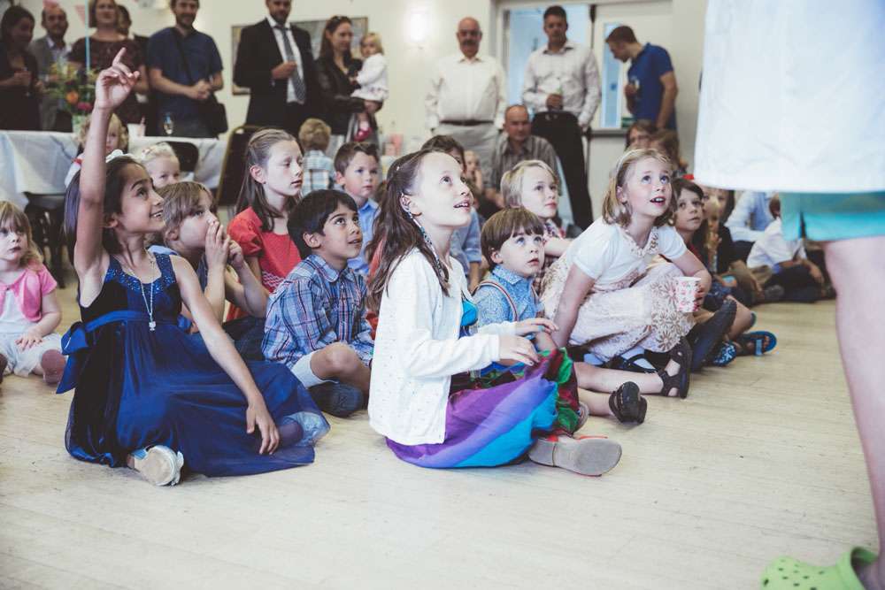 “We had tons of kids attending so we wanted them to enjoy the wedding as much as the adults. We hired Sublime Science, a kid’s birthday entertainer. ‘Prof Louis’ was fab and she kept the kids utterly enthralled. There was sweet making, exploding coke rockets, slime making, chasing fugitive balloons across football pitches, lots of shrieks, screams and smiles from all the kiddies and most of the adults!”
